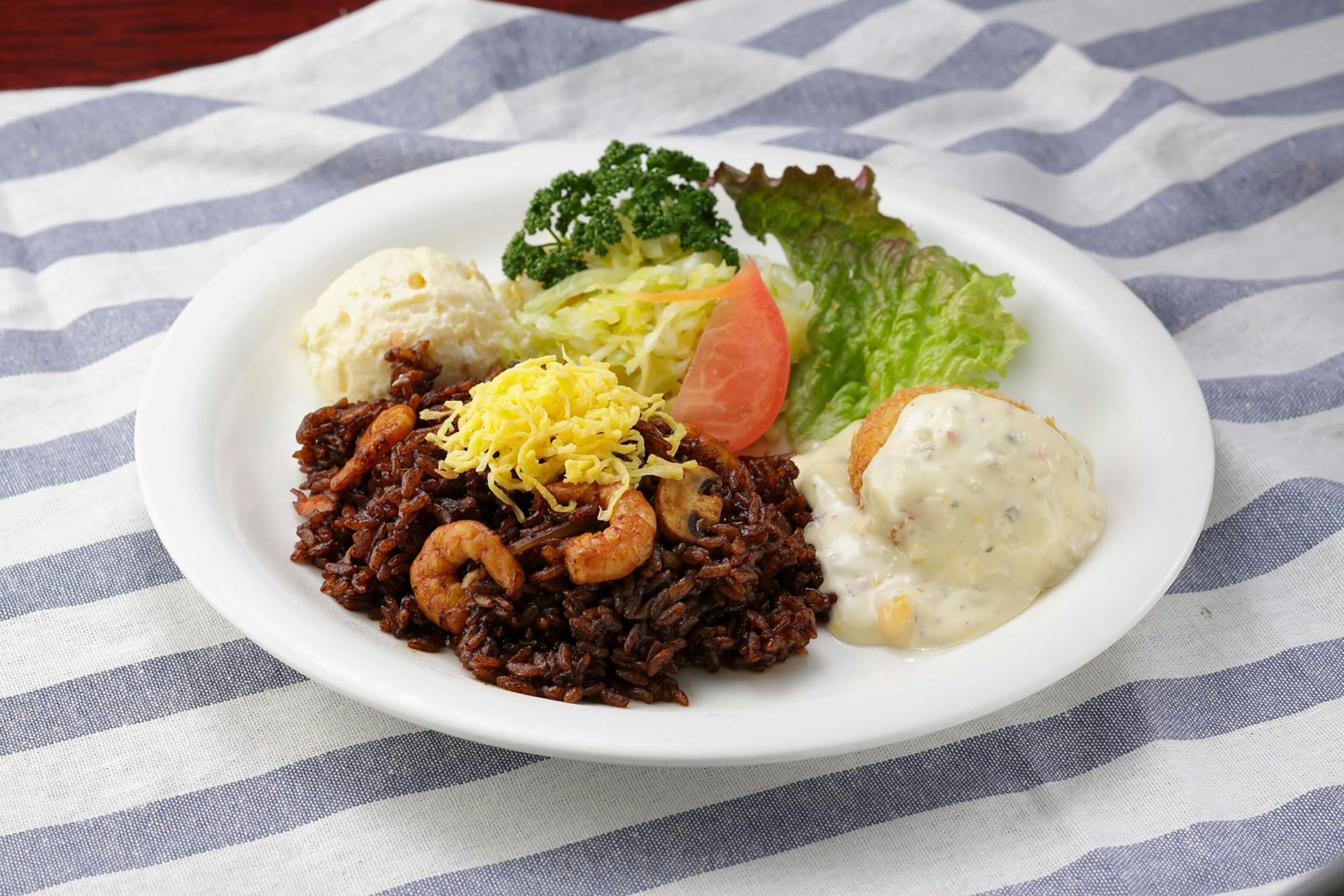 大人気のカニクリームコロッケとえびめしを合わせたプレートになります。