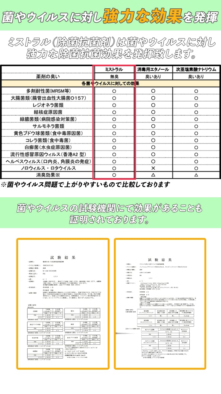 菌とウイルスに対する商品であり、試験結果などはございますが、