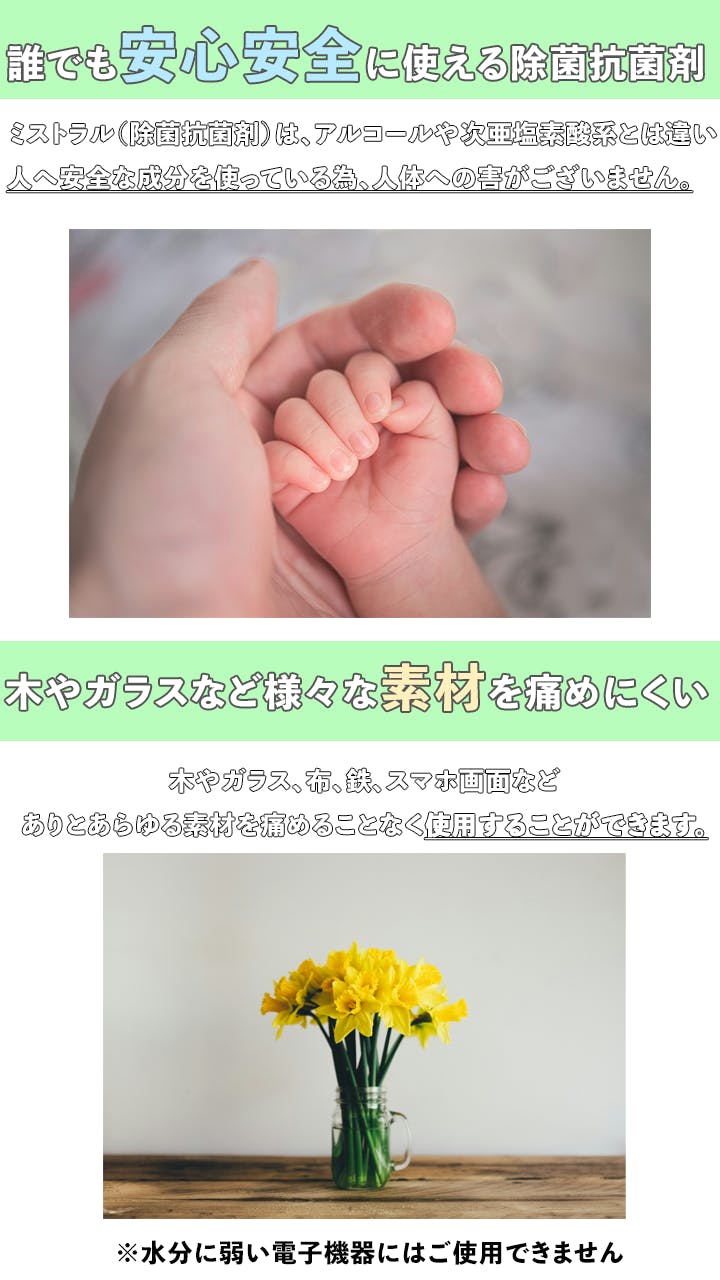 その為、弊社ではこのイメージの打破するかつ、アルコールや次亜塩素酸系より安心安全に使用でき
