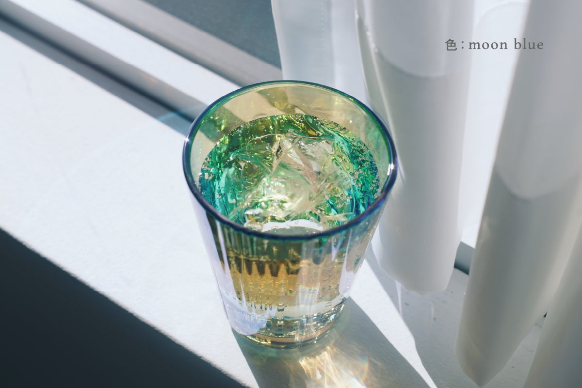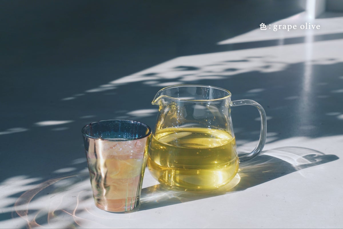 時間帯による光の変化や中に入れる飲み物によって、思わぬ色合いが引き出されるyura glass。見ていてまったく飽きることがありません。