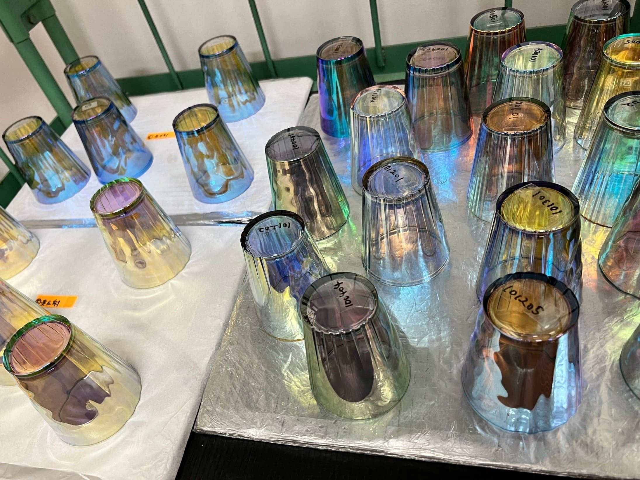 こうした「蒸着」と「成型」が組み合わさることによって、無数の表情が生まれる唯一無二のグラスが出来上がりました。