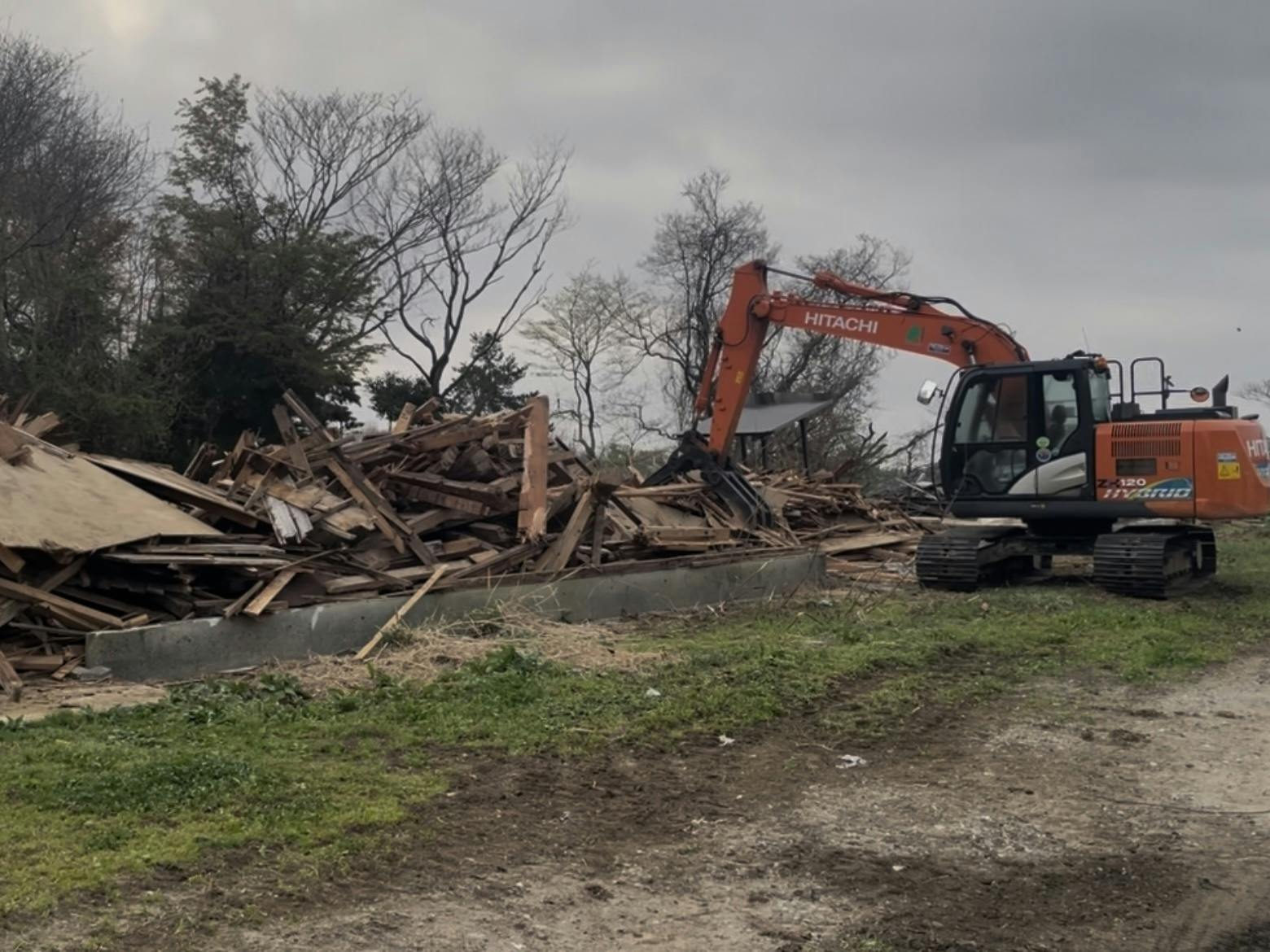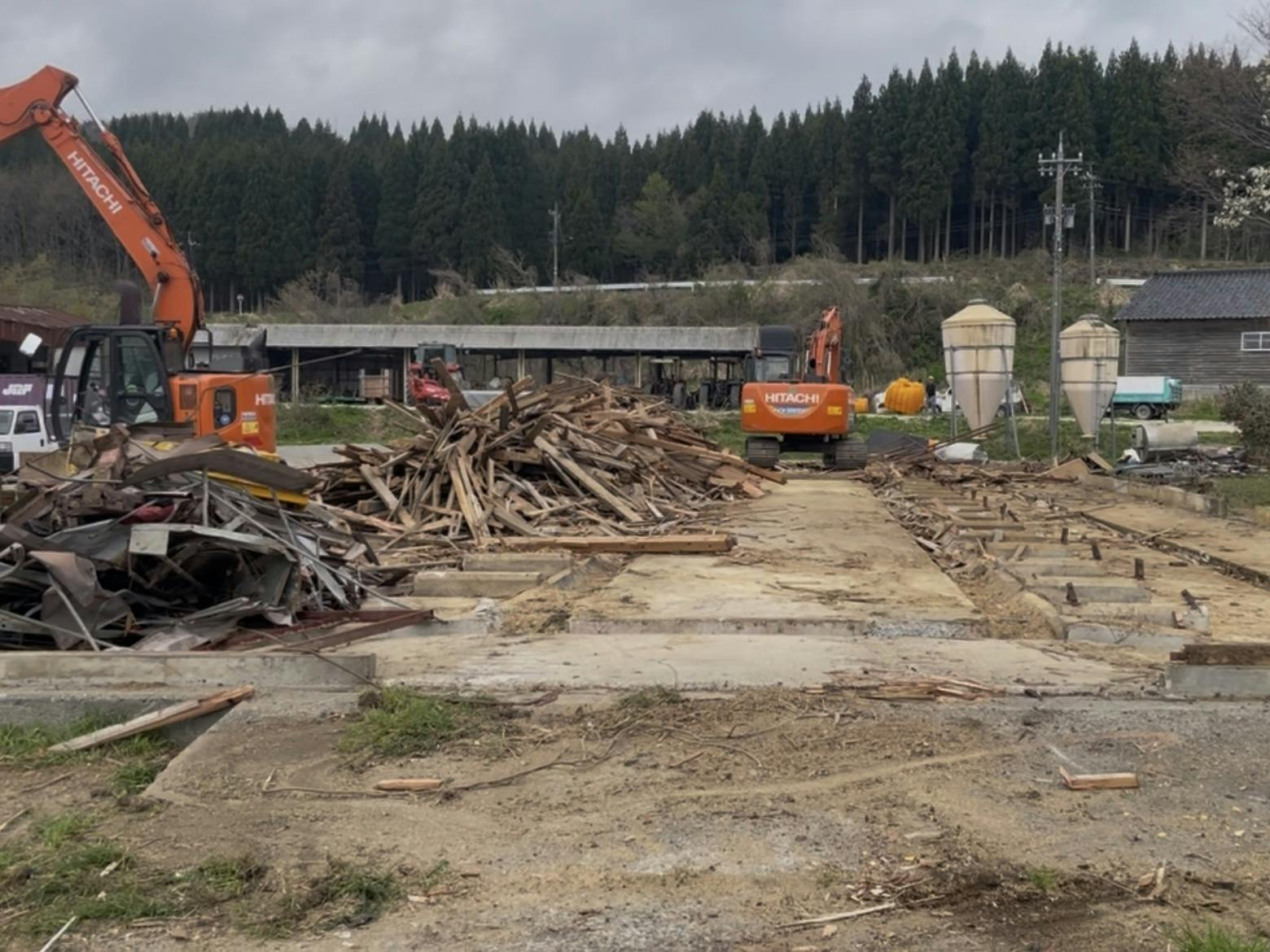 公費で解体予定だった2棟の牛舎のうち、1棟の解体が完了しました。