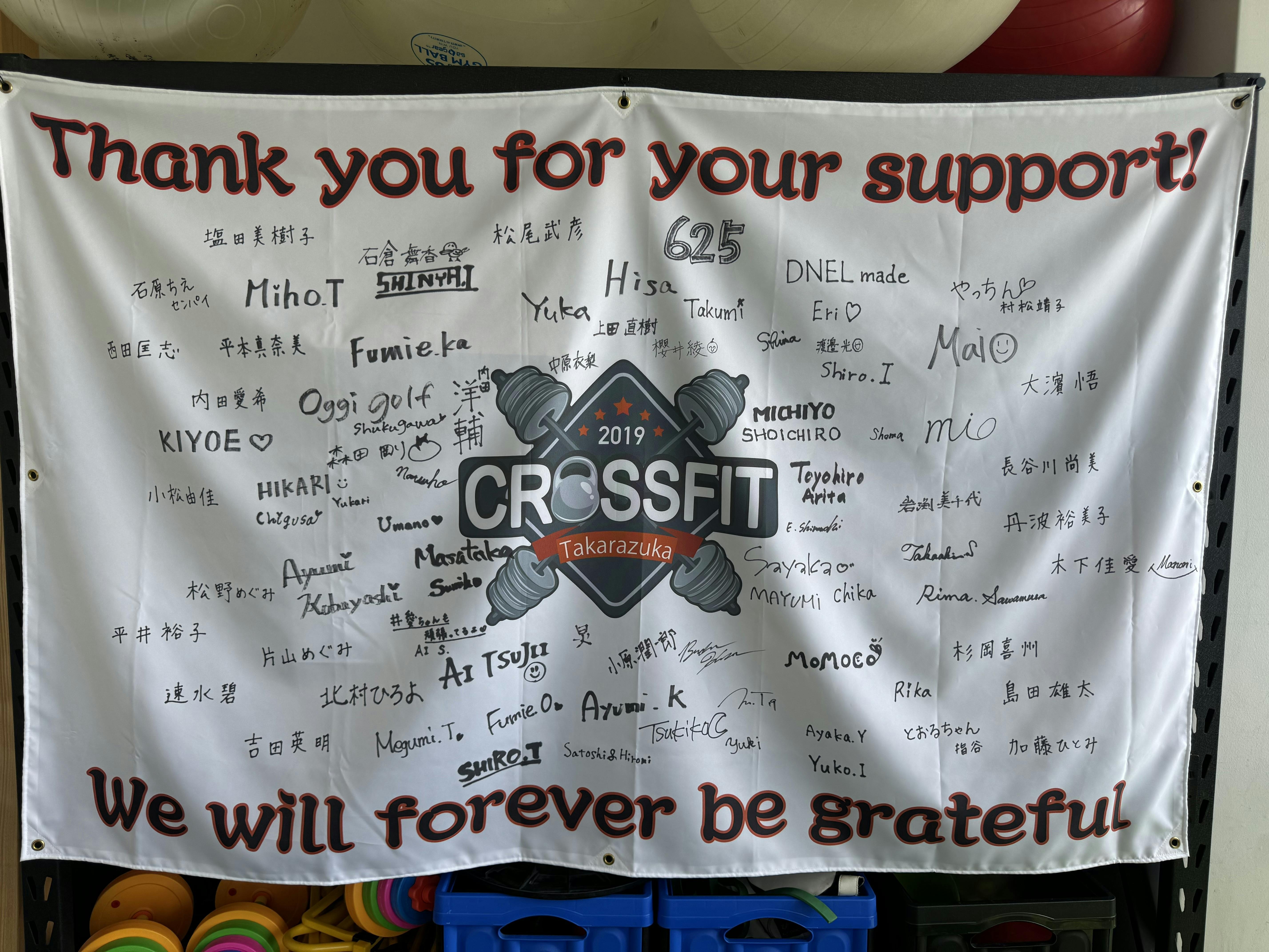 最後までご覧いただきありがとうございます。みなさんの熱い支援でクロスフィット宝塚はより良いジムになります。