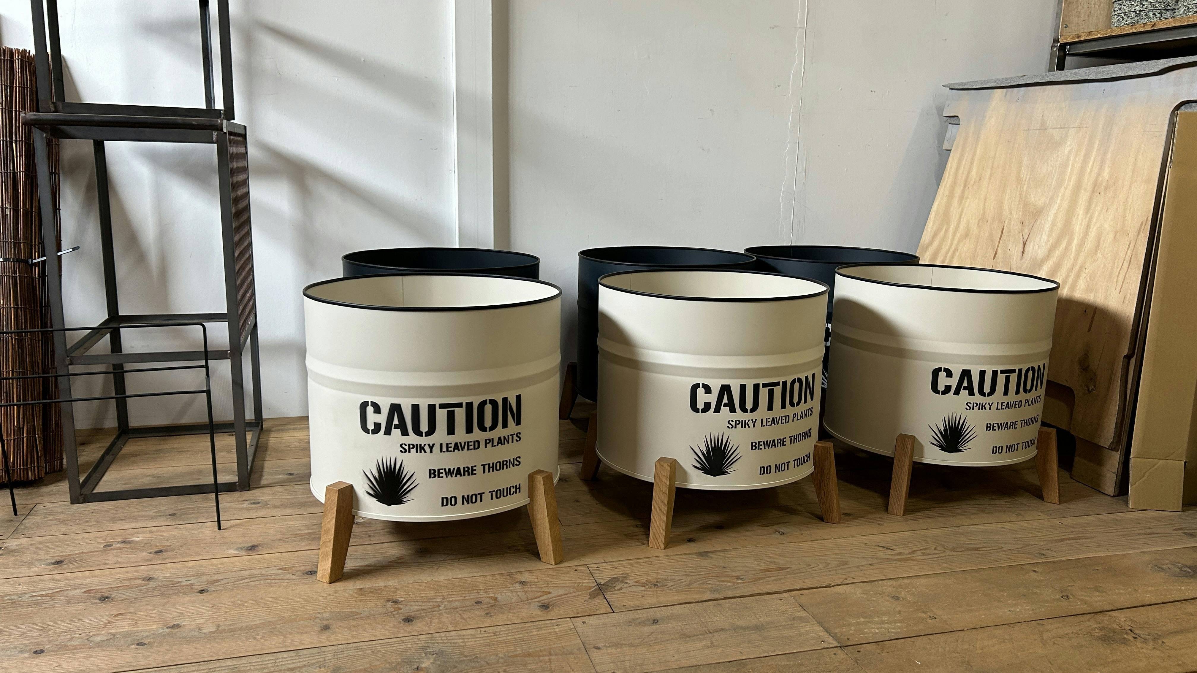 ドラム缶本体は、”新品”を使用し中に何も入ったことのない綺麗なものを使用しております。錆を防ぐため”船舶用”の錆止め塗料を塗っております。プランターは土を入れて水を撒きますので、より耐久性の良いものを選びました。上塗りは独自に調色したウレタン塗装を施しております。