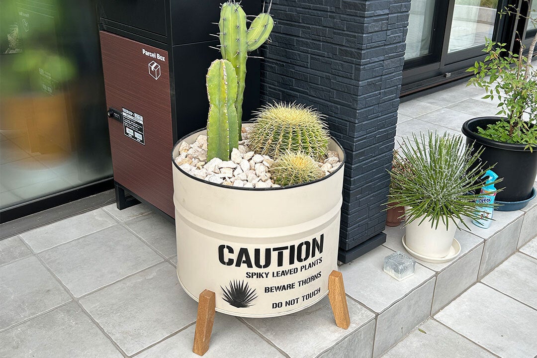 オシャレに玄関・庭先を飾りたい!プラスチックのプランターだと、なんだかしっくりこない。。。もっとかっこいいプランターが欲しい!と思い、ドラム缶プランターを製作しました!通常売られているプランターより大きめサイズで、ドライガーデン風にサボテンやアガベなどの多肉植物を植えこむと、かっこよく見せることができます。