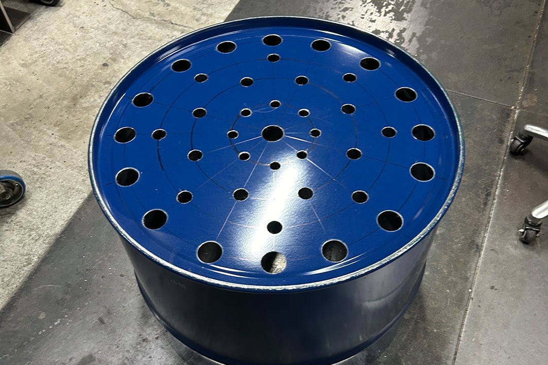 ドラム缶底には、多数の穴を大小あけております。