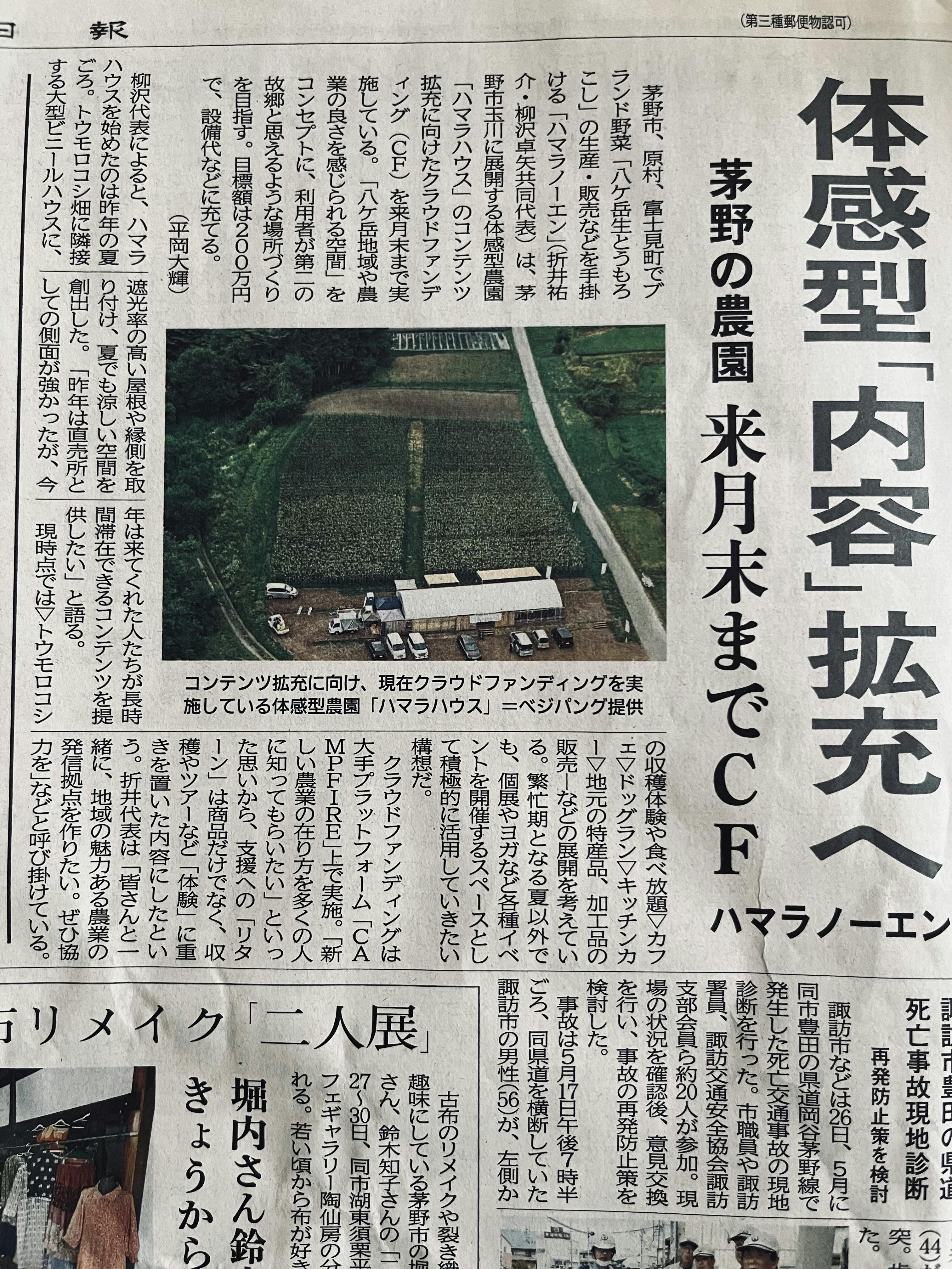 長野日報様に取り上げていただきました!!
