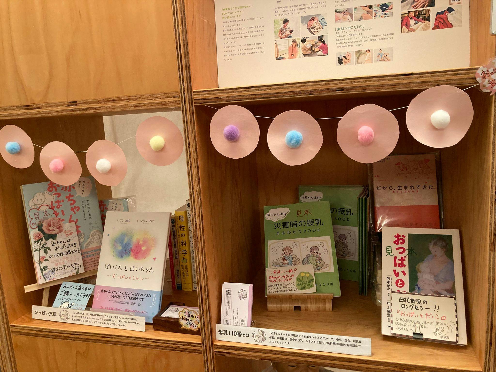 母乳110番の「おっぱい文庫」。モーカフェと、モーハウス日本橋ショップにあります