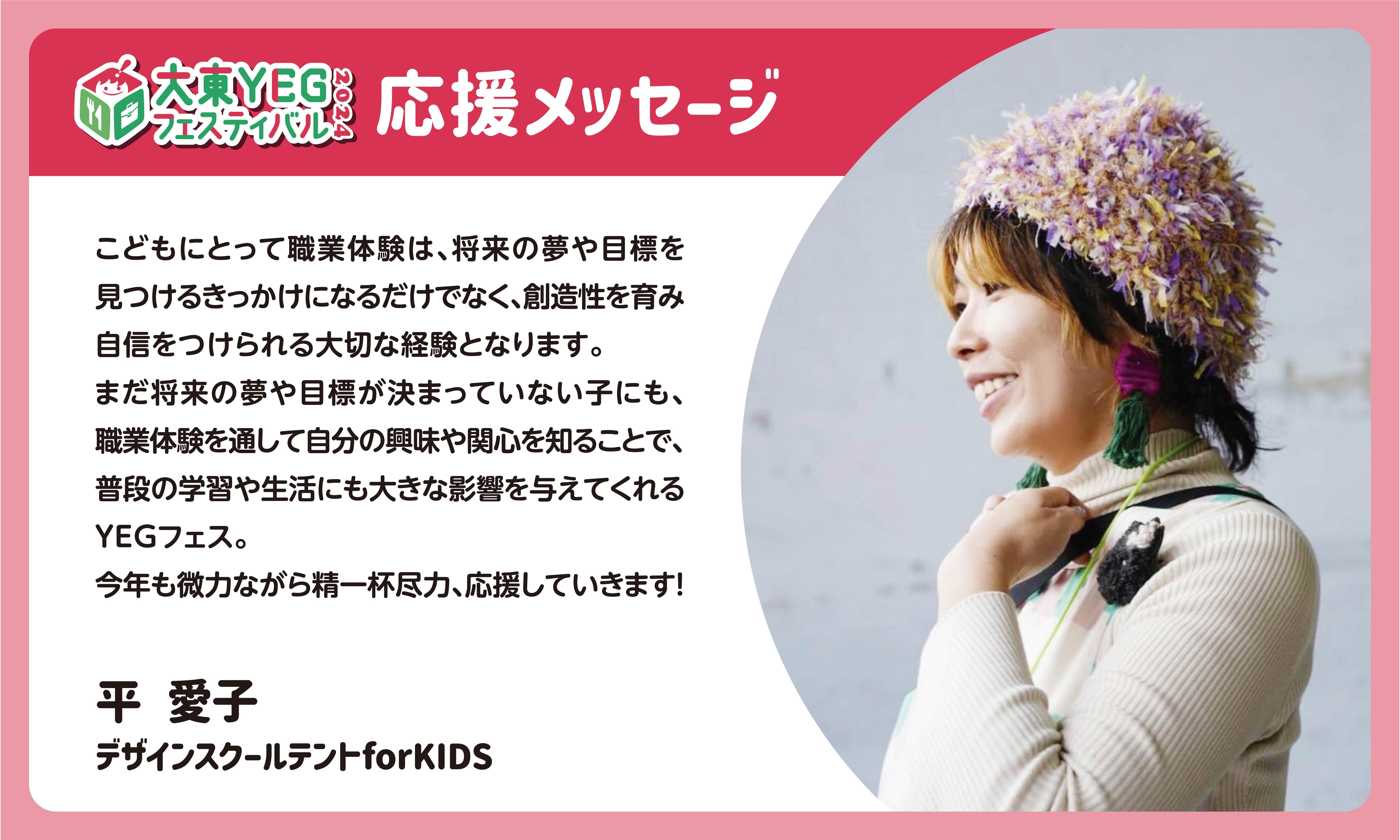 子ども達に地域のお仕事体験、地域の方々とのコミュニケーションを通じて、自分達の暮らす大東市にもっと興味を持って、知って、好きになってもらえたら。大東YEGフェスティバルを通じて伝え、届けていきたいと思います。