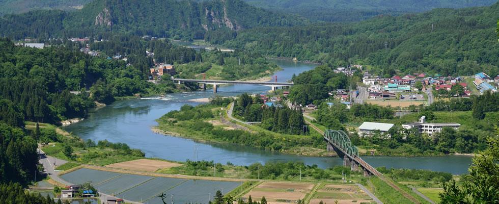 阿賀町は、新潟県の下越地方にあり、福島県と接する山間の地域です。阿賀町には、福島県の会津地方に端を発する日本有数の大河である阿賀野川が流れ、四季折々の渓谷美を私たちに見せてくれます。また、阿賀町は山村地域で四方を山に囲まれており、猿やトンビを始めとした野生動物やミヤマクワガタなどの昆虫も多く見られます。狐火伝説という地域の伝承が残る地で、将軍杉という今ではパワースポットとして親しまれる日本一の巨木もあります。全国的にも有名な日本酒「麒麟山」は阿賀町の清水を活かして作られる町のブランド品となっています。