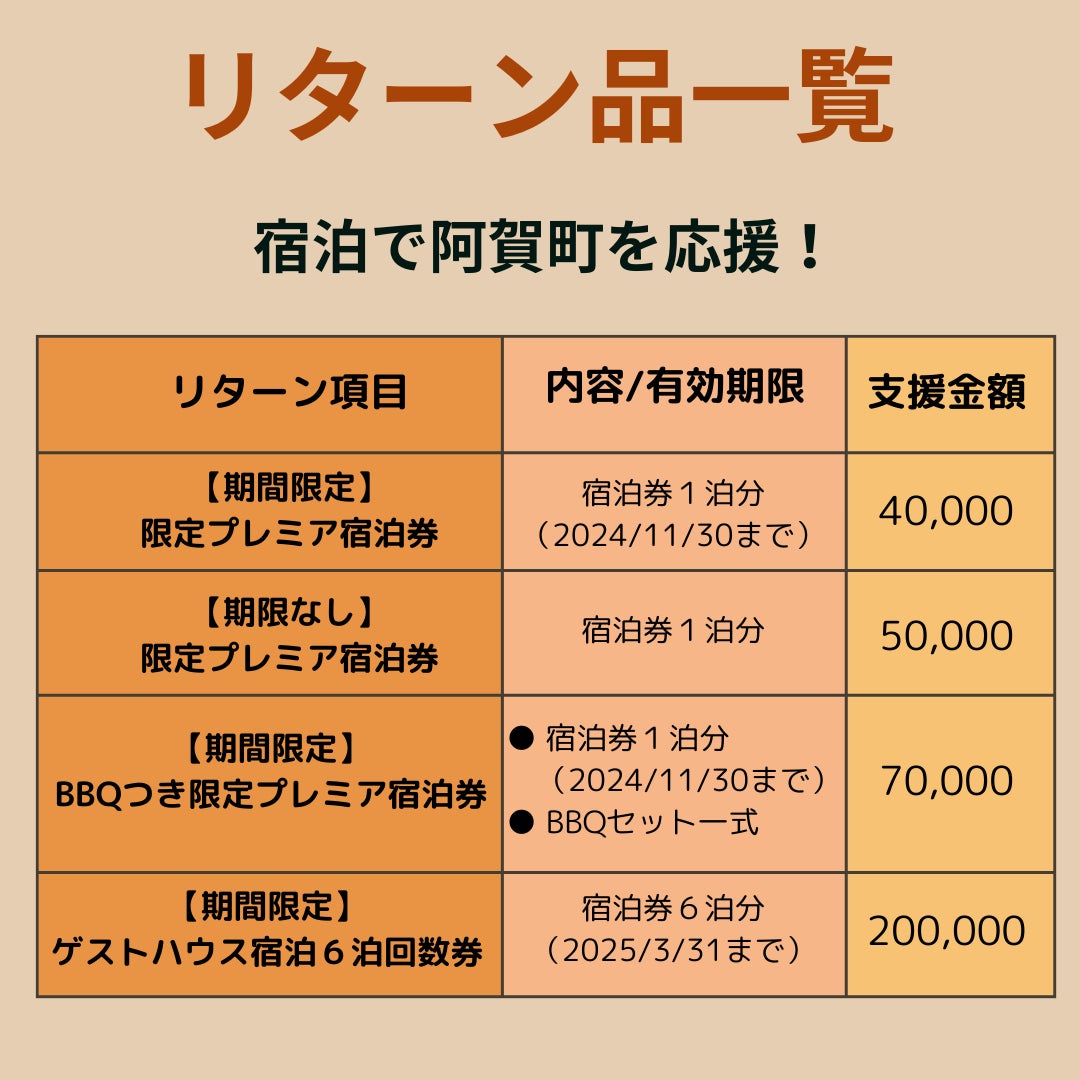 リターンには、クラウドファンディング限定のプレミア宿泊券を中心にご用意しています。宿泊券を皆様のゲストハウス利用のきっかけにしていただくとともに、このクラウドファンディングを通して私たちの地域活性化への想いを皆様に共有していきたいです。どうぞ最後までご覧ください。