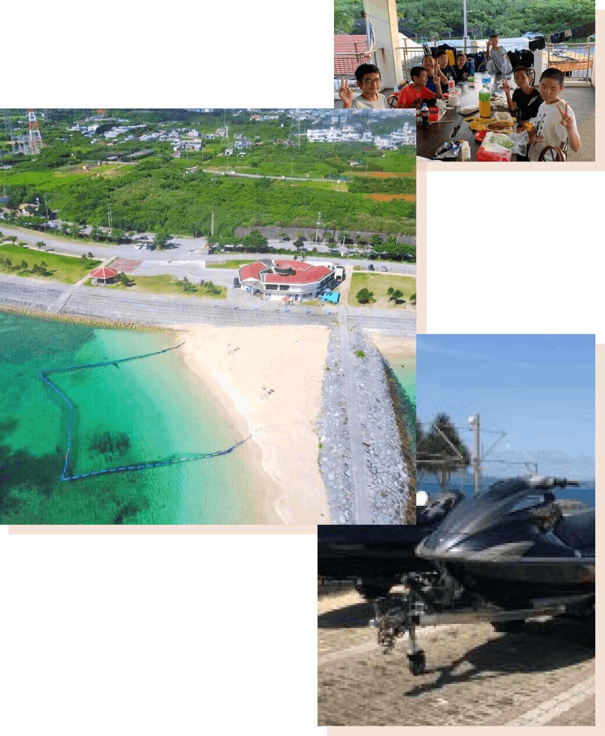 人口ビーチのため波もおだやか。遊泳時間は監視員が常駐しているので安心です。気になることや困ったことがあればお気軽にお声かけください!マリンスポーツは、定番のバナナボートや、空中散歩ができるフライボートが大人気!遊泳をしたりマリンスポーツを楽しんで、仲間や恋人との最高の思い出作りに、宇堅ビーチへ遊びに来てください!!ー宇堅ビーチHPより引用ー