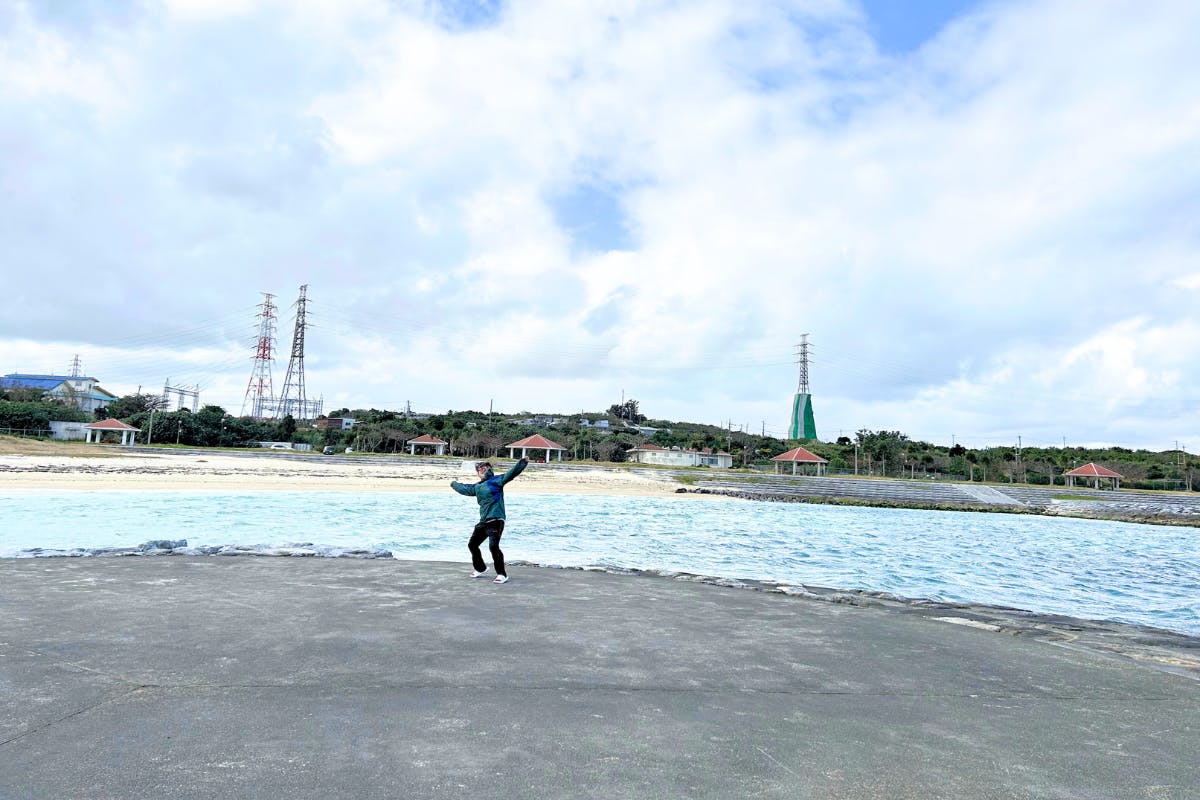 沖縄市から東の「うるま市」ってとこにあって、那覇空港からは車で1時間くらいの市営ビーチです。