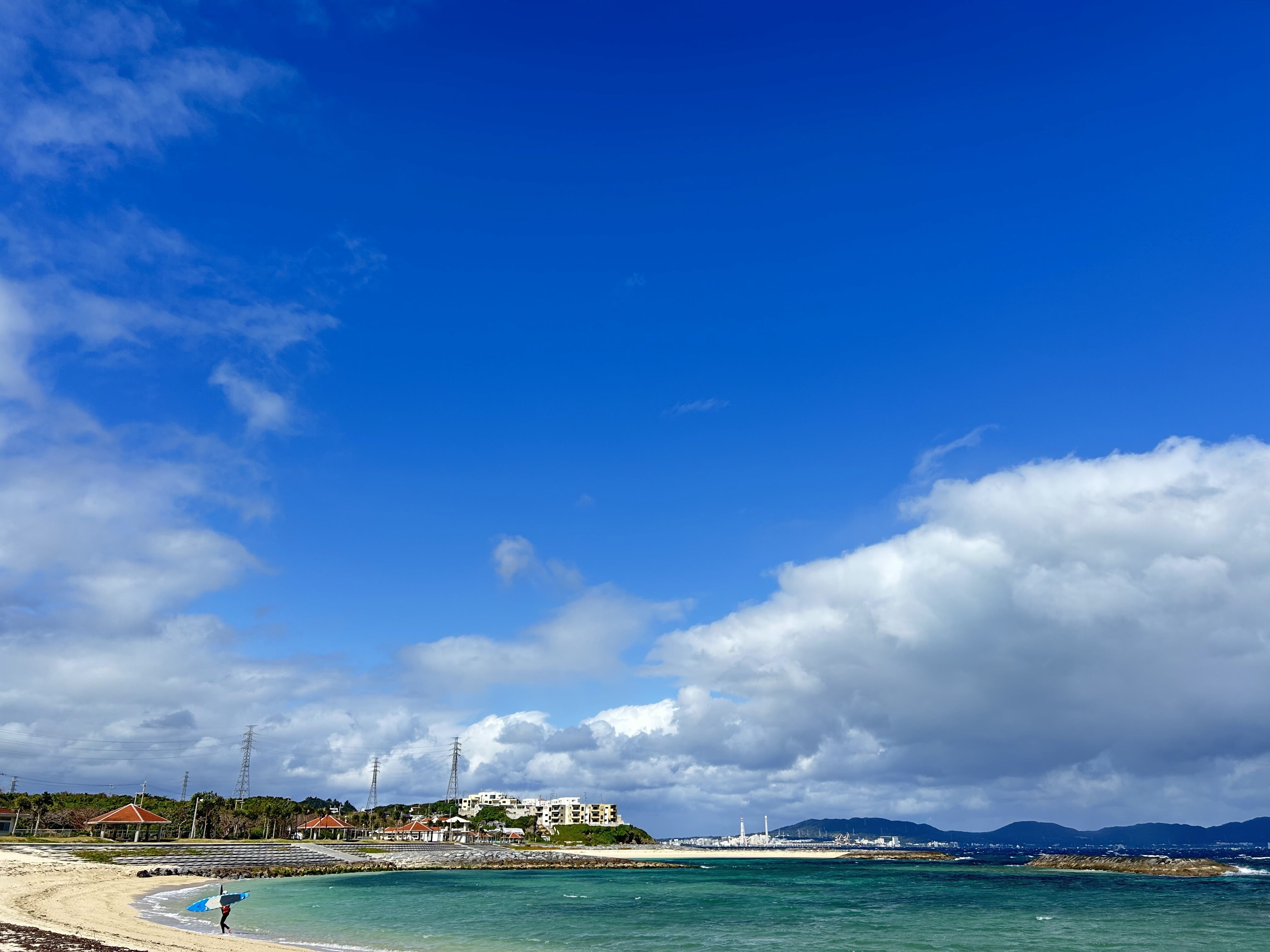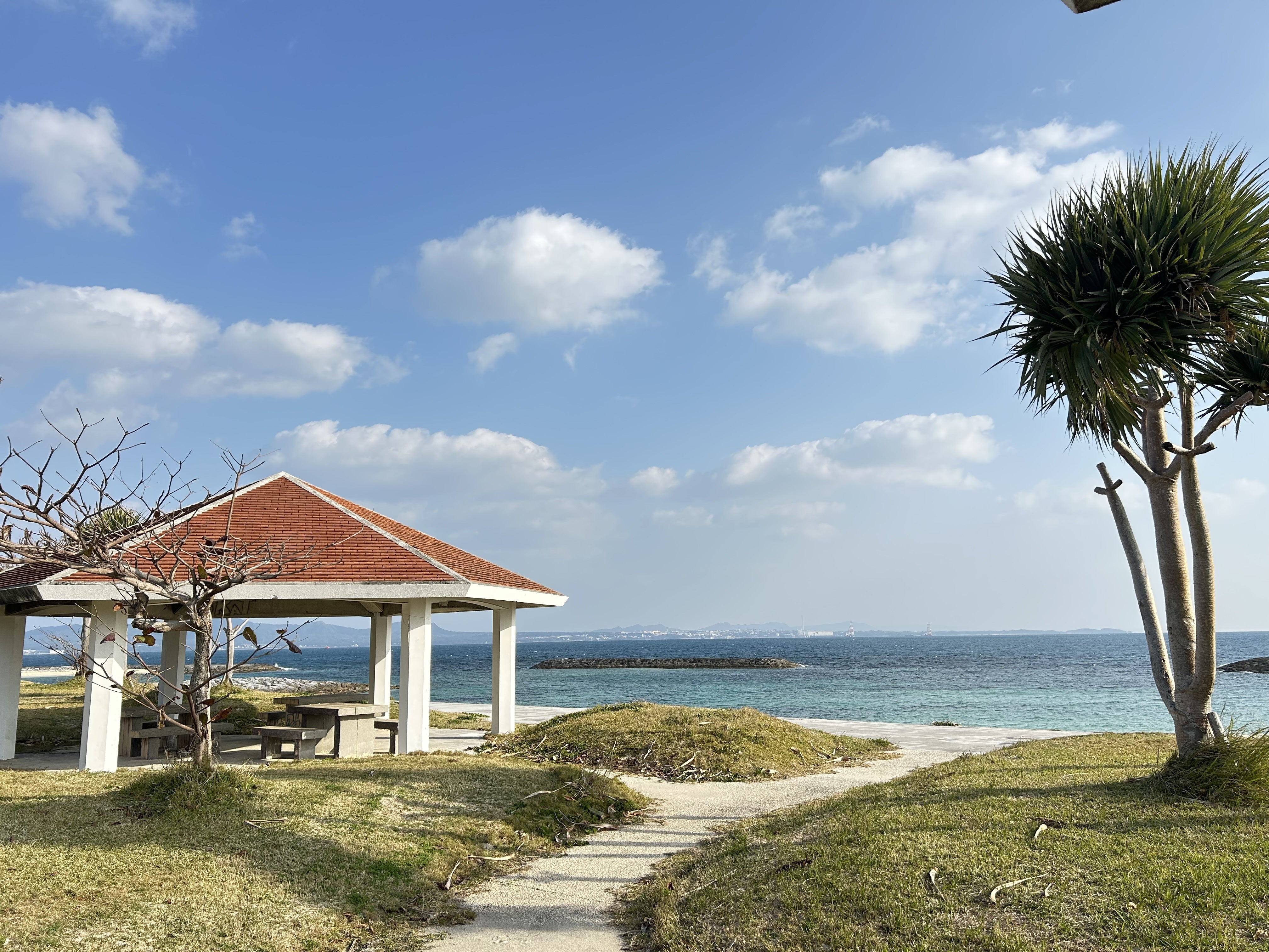 沖縄市から東の「うるま市」ってとこにあって、那覇空港からは車で1時間くらいの市営ビーチです。