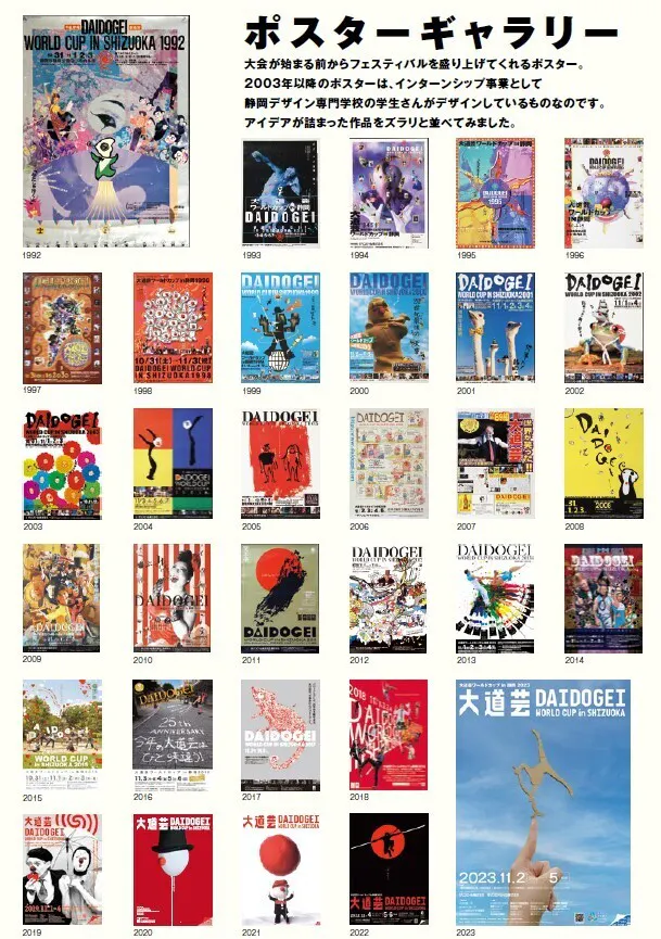 静岡デザイン専門学校と連携し、学生たちによるポスター・リーフレット制作のインターンシップを開始。今日までこの伝統は受け継がれており、今年のポスターデザインも学生たちのコンペにより採用されます。