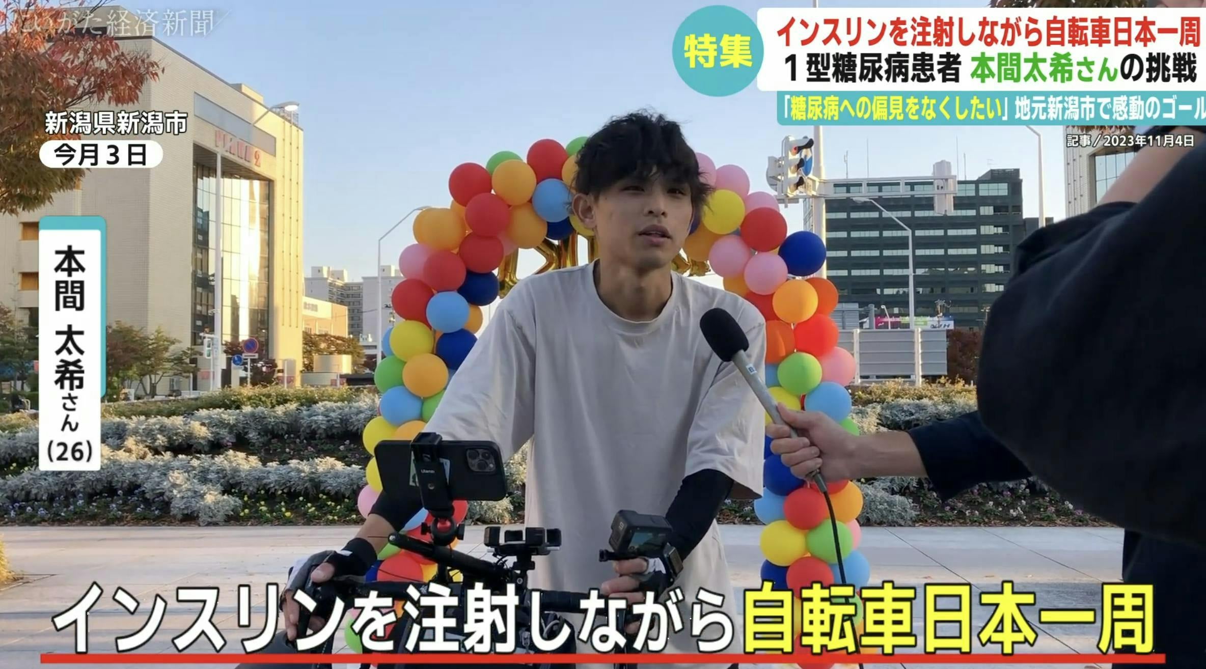 にいがた経済新聞 /【糖尿病への偏見をなくしたい】本間太希さん「インスリンを注射しながら自転車日本一周」の挑戦、地元新潟市で感動のゴール