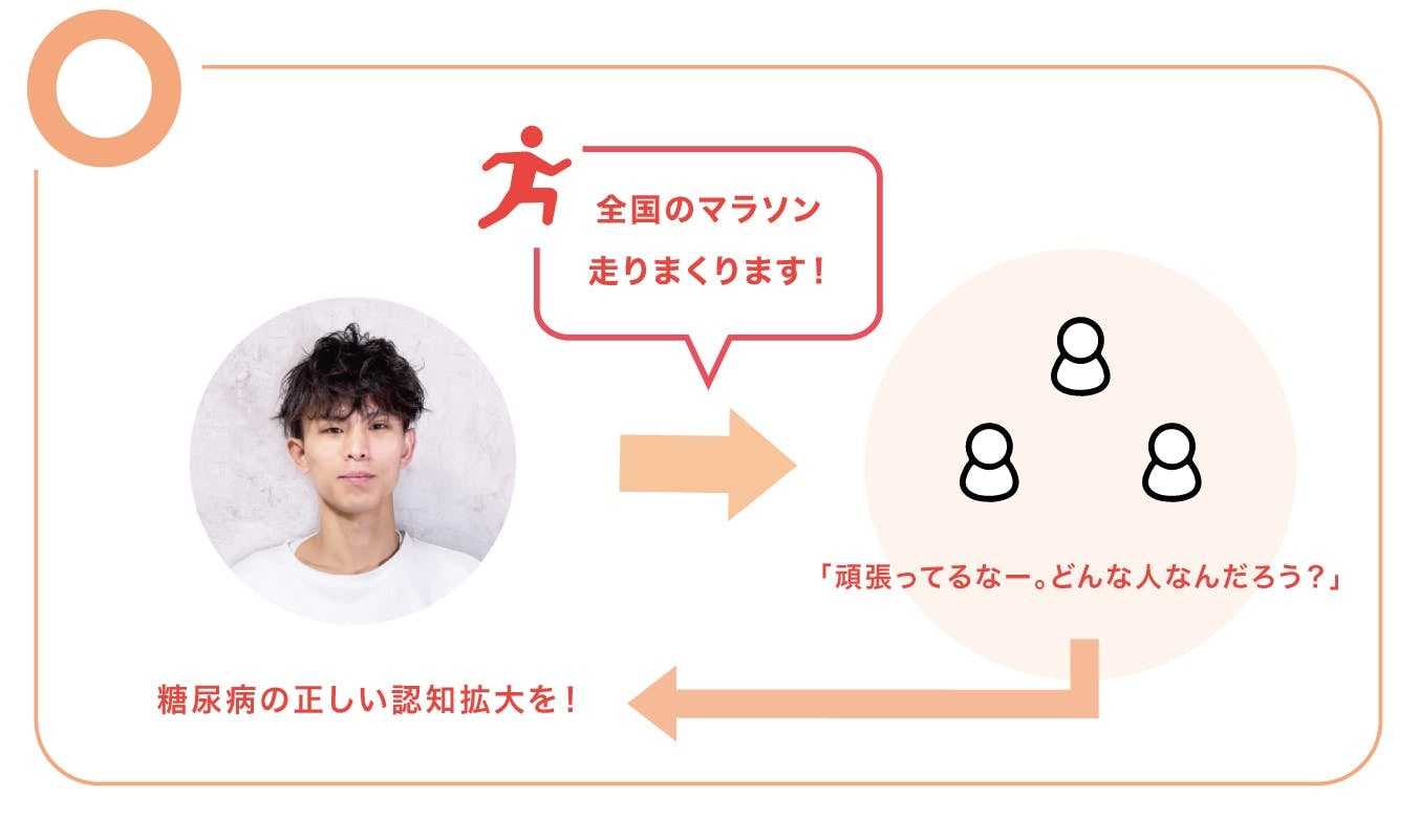 そこで今回、国内最大規模のマラソン大会『東京マラソン』を走るまでの過程をエンタメとして発信・メディア露出することで、今まで同じ病気の人と繋がりを持ちたくても持てなかった患者さんや、糖尿病にそもそも縁がなかった方々に、より情報を届けることが出来ると思い今回の企画実行に至りました。