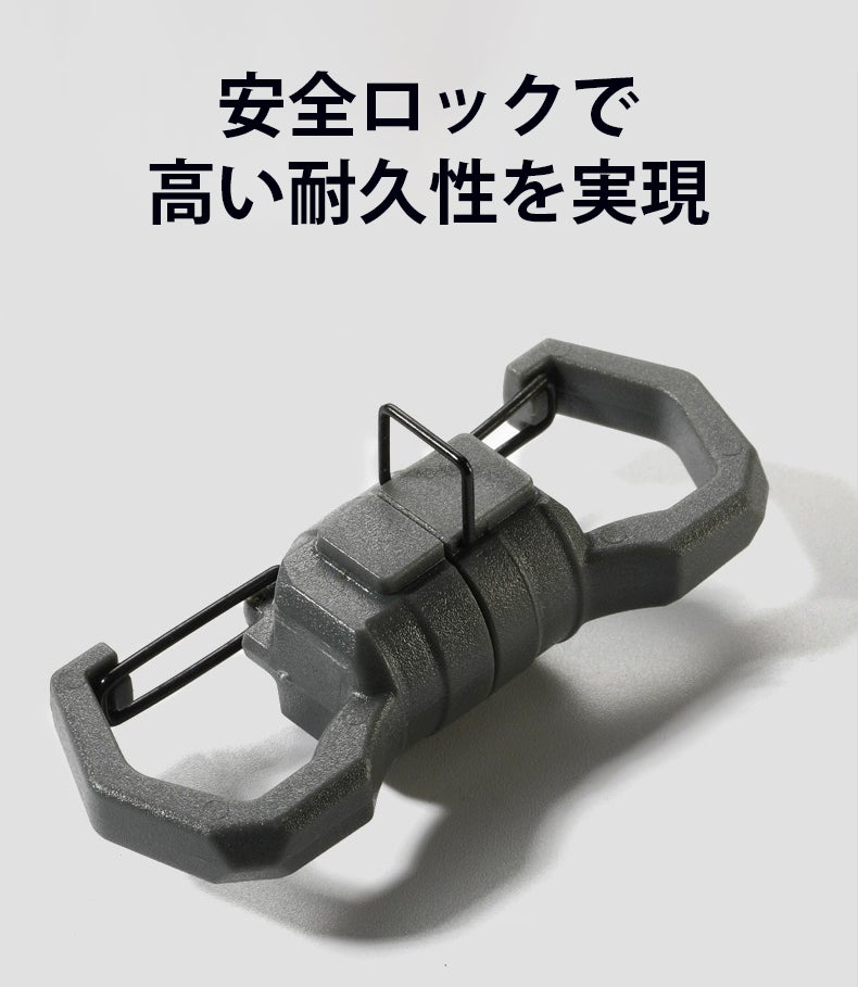 また、安全ロックをかけることで、最大10kgの荷物を吊るすことができるようになります。