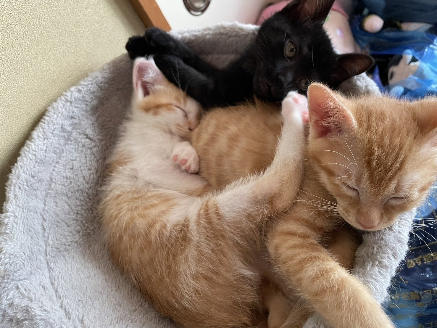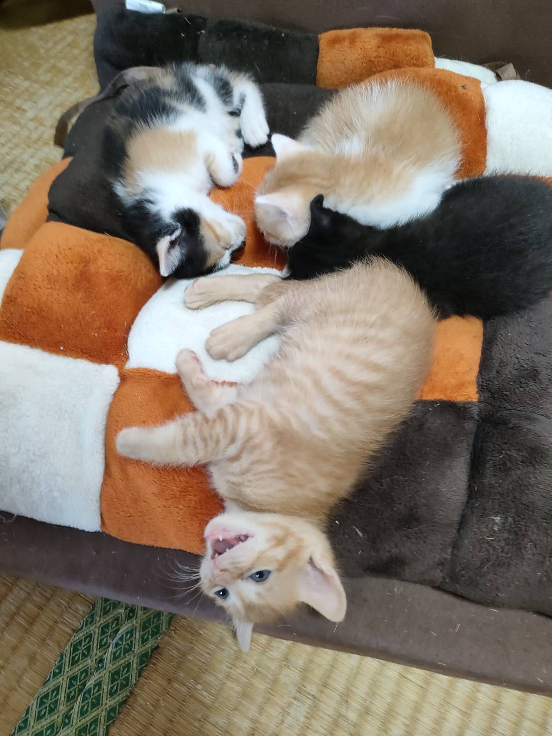 本日最終日!!!日付が変わる24時までです残り約9時間程現在、なんとトータル98%まできてます!!!目標金額まで残り5000円です!出来れば目標金額を超えて少しでも多く資金が集まれば物凄く助かります!どうか可愛い猫達のために最後までよろしくお願いします!今日の猫写真!!!子猫達も結構成長しまして11匹で大運動会が日々行われておりますがwキャットタワーもひとつボロボロになりましたがみんなこんな感じで、半日は健やかに眠っております!
