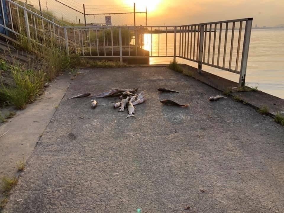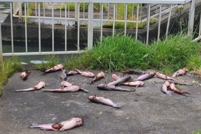 堤防などで釣り客が放置したアメリカナマズが腐敗してしまうと、