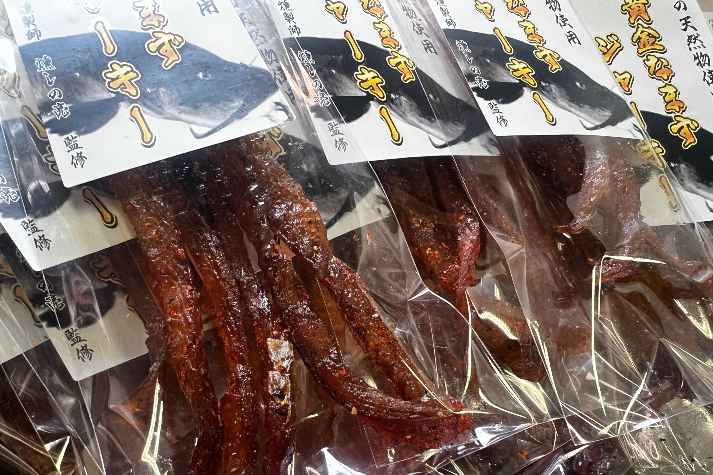 中まで味を染み込ませ熟成させてから燻製にするので、噛めば噛むほど旨みが出てきて、気がついたら袋が空になっていることもしばしば。