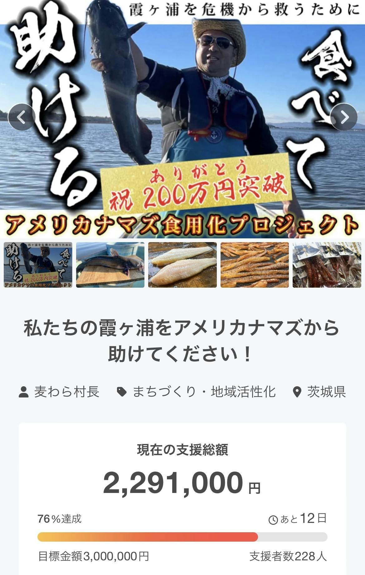 プロジェクトオーナーの麦わら村長です。支援総額が遂に200万円を突破しました。