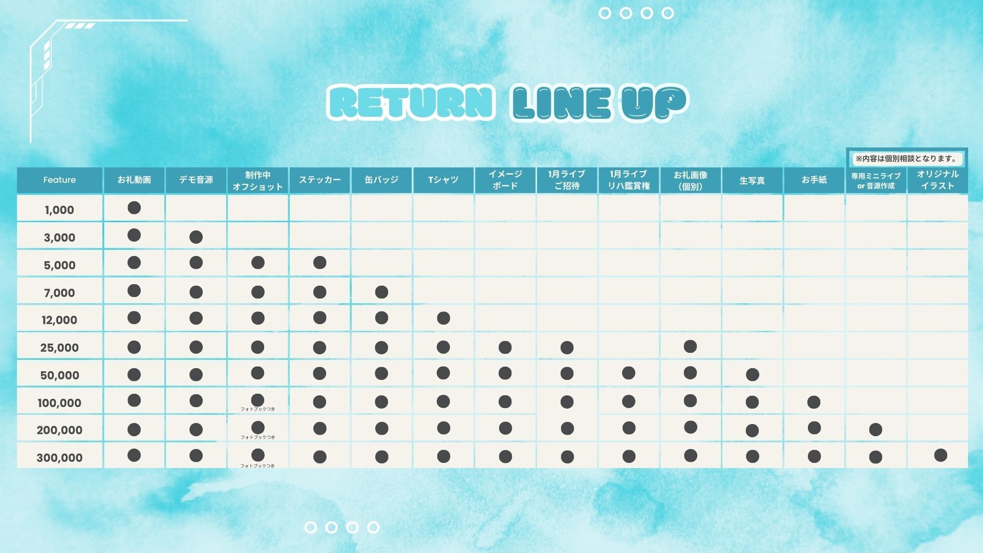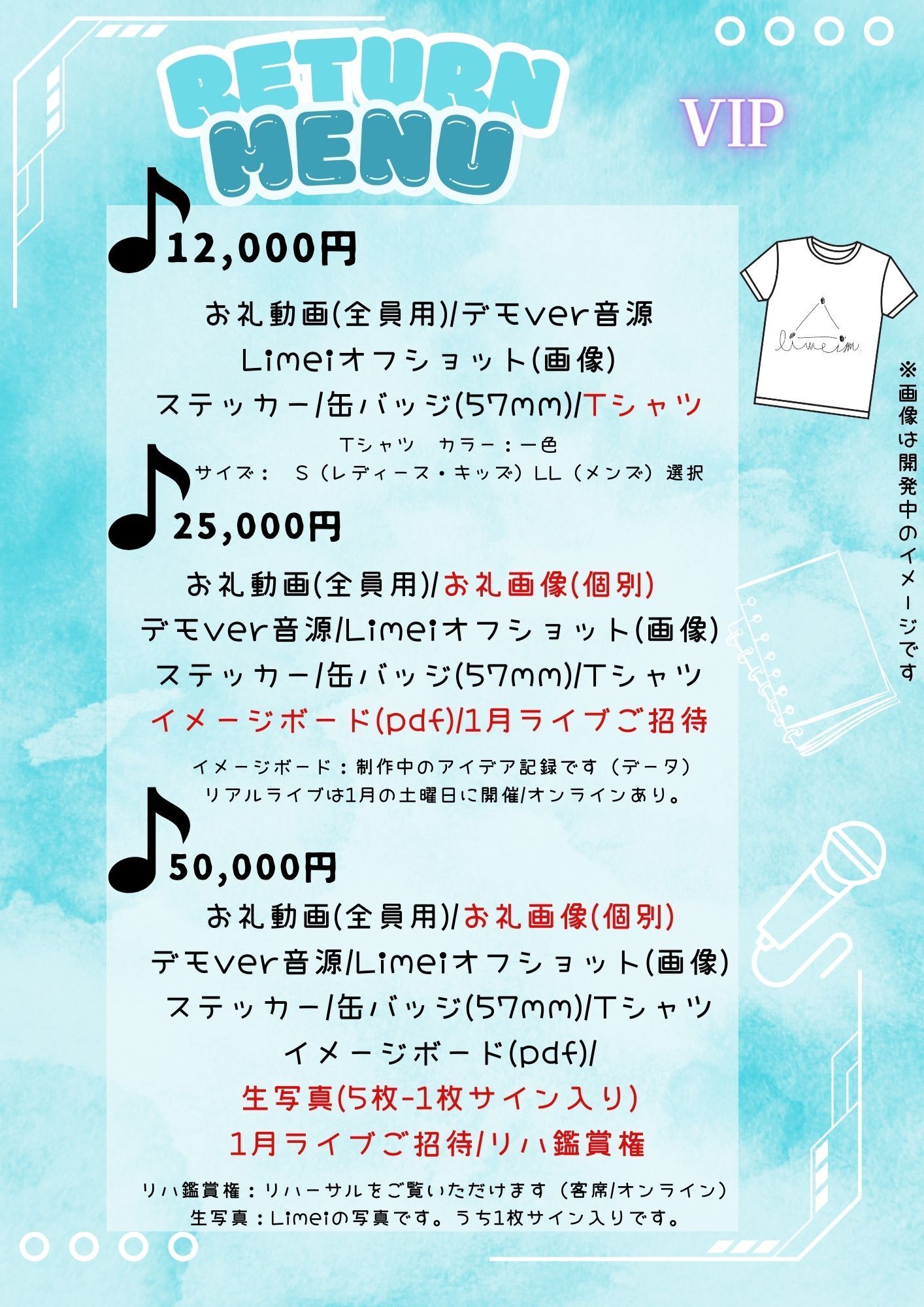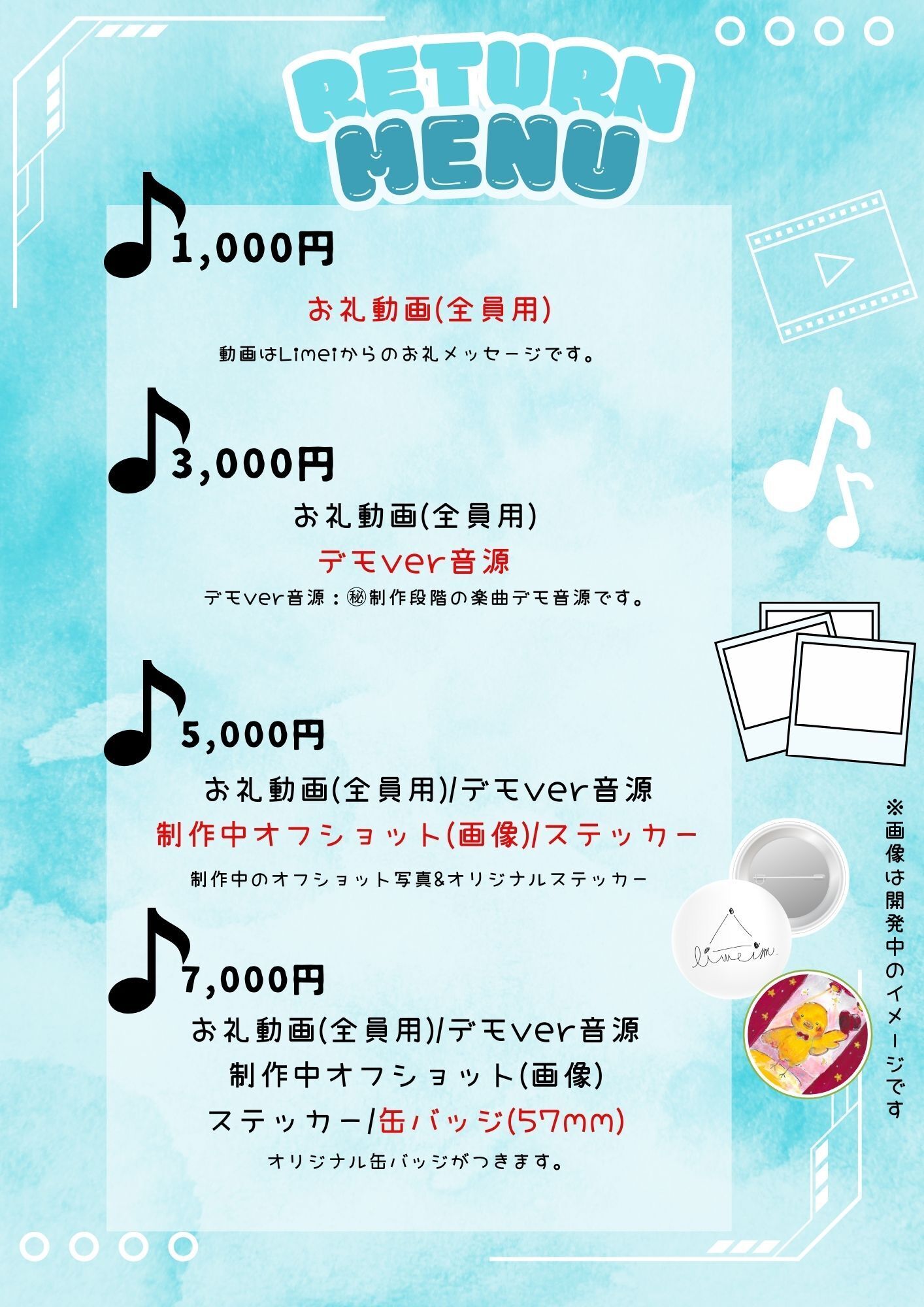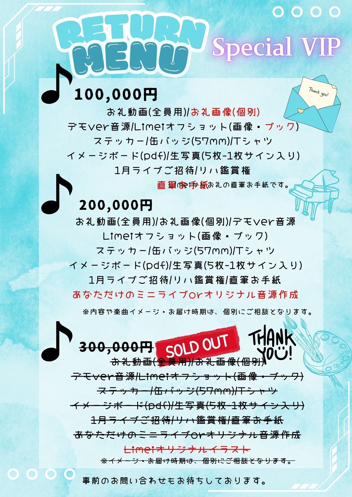 (※資金の集まり具合や、楽曲制作楽器等を追加する場合は、本人デザインで対応する場合があります。)