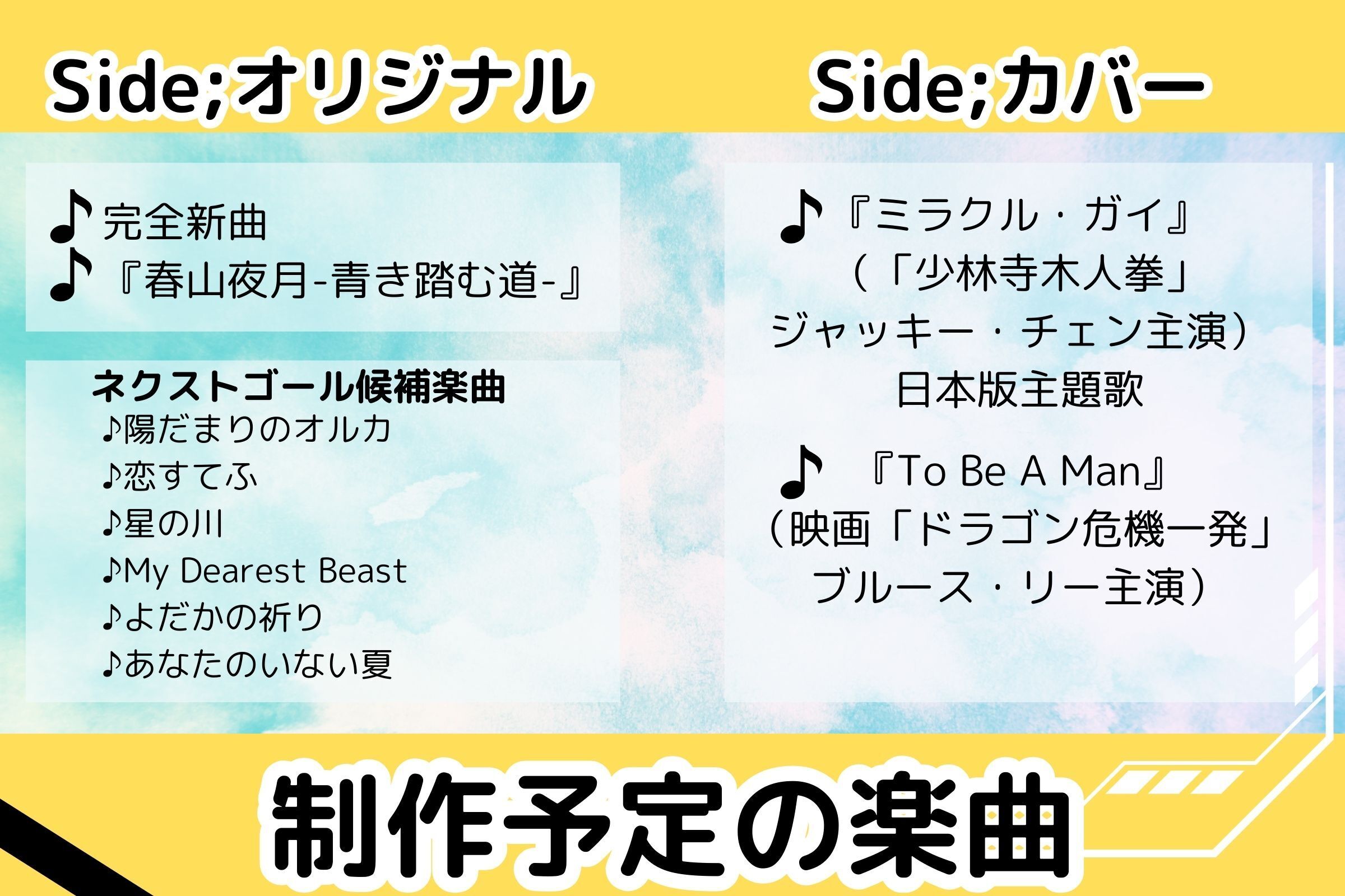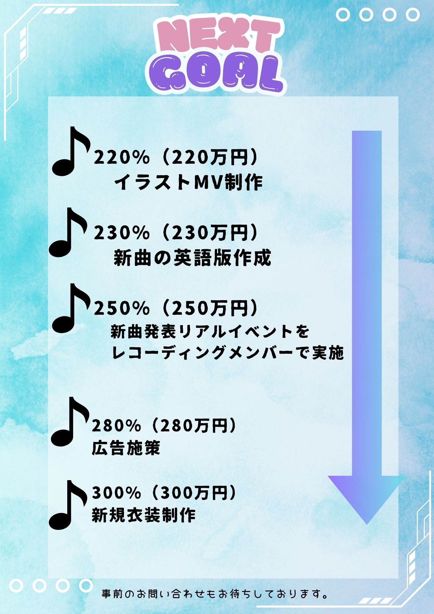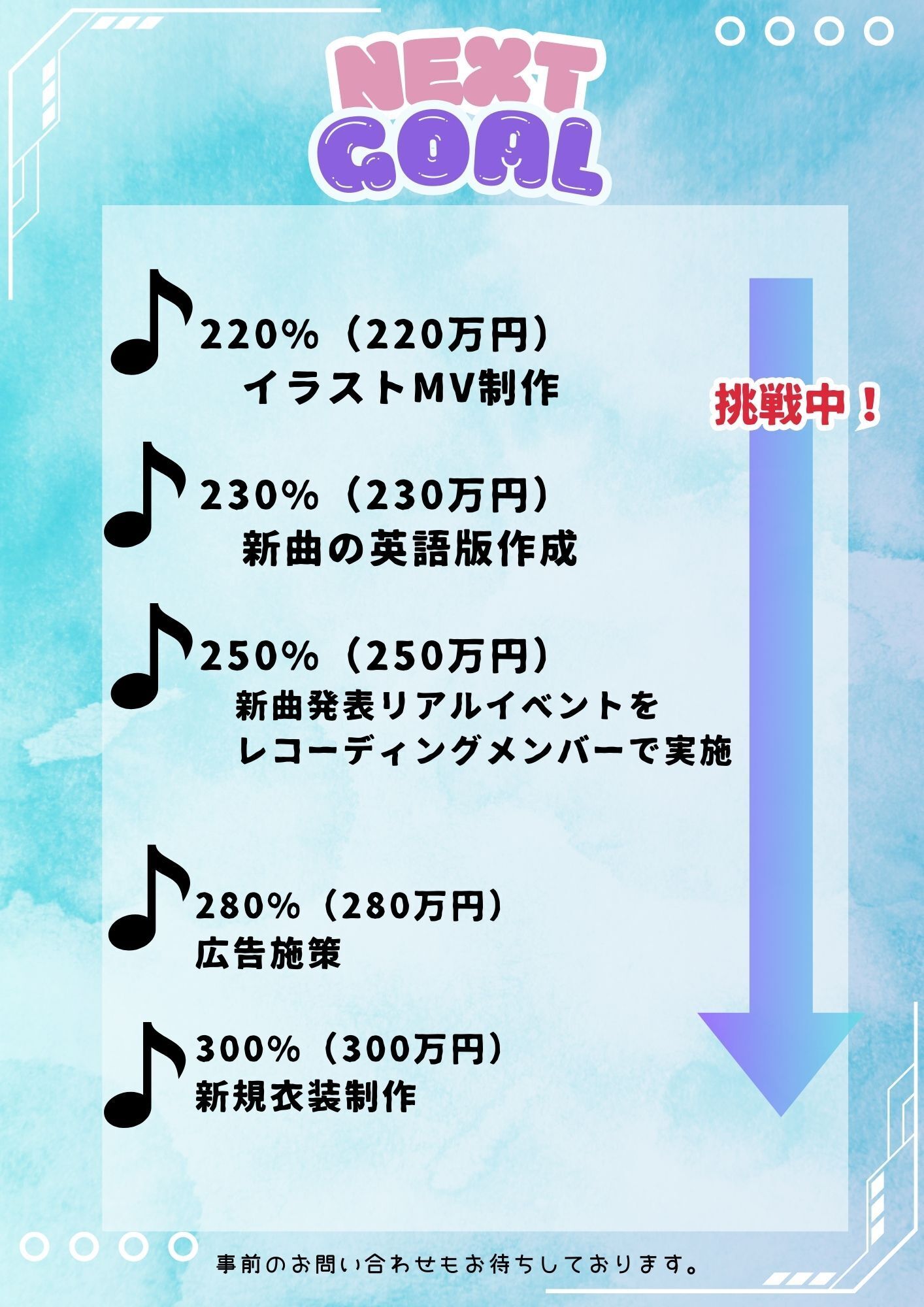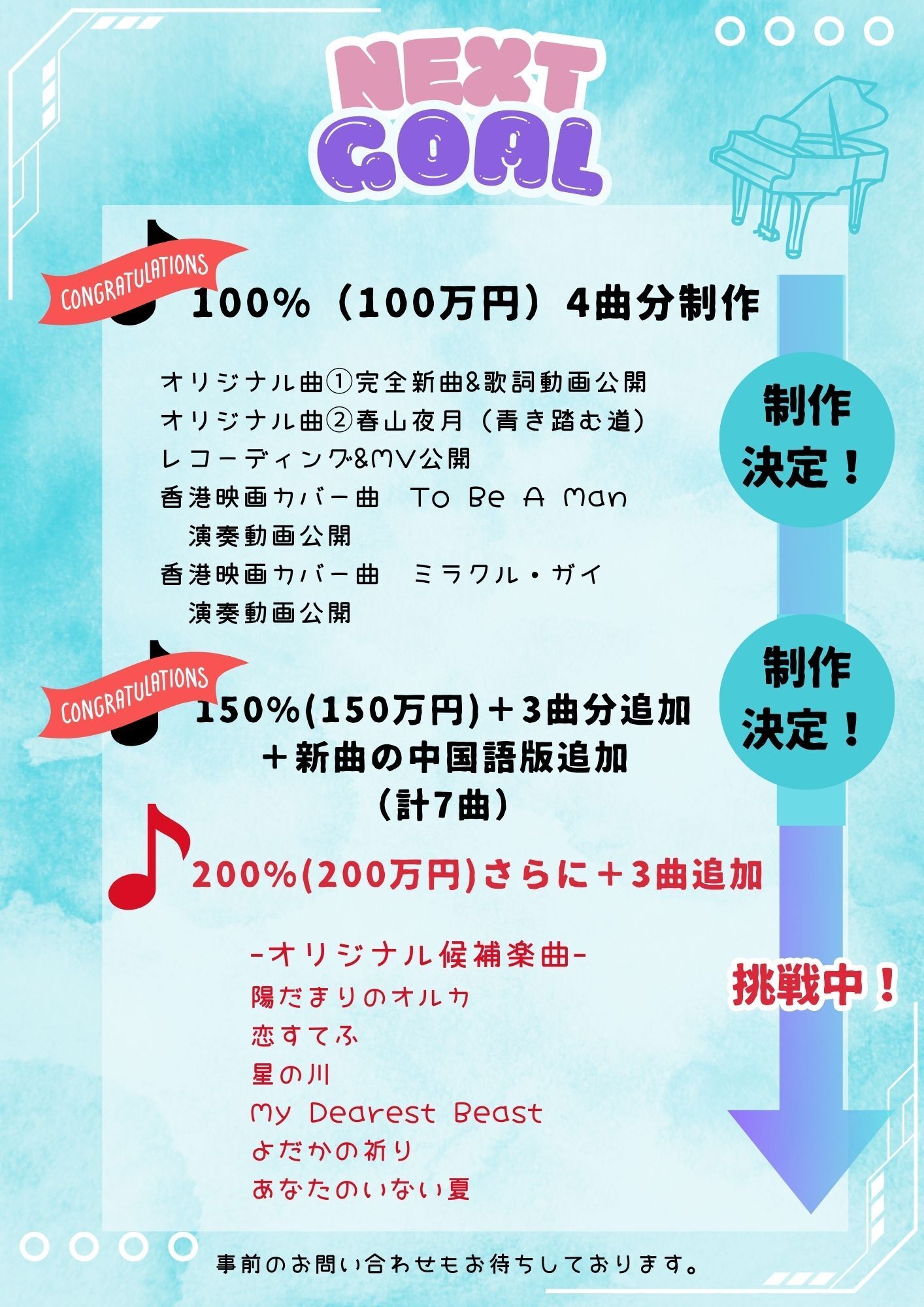 (NEXT GOAL 200%達成で合計10曲!!)