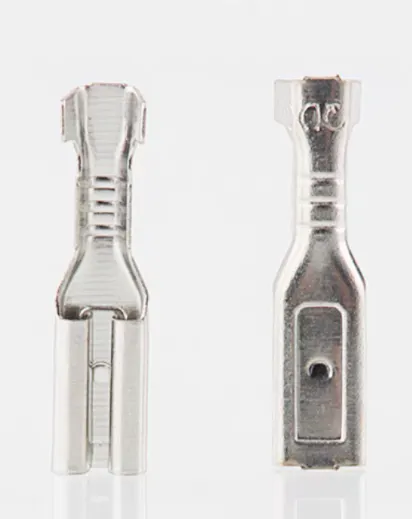 切り取られたスプリングとボタン端子上の穴でロック構造を形成し、端子を固定します。接続は簡単で、取り外す際には針状の工具でロック点(下図の円内に示されています)を押す必要があります。汎用性が非常に高いです。