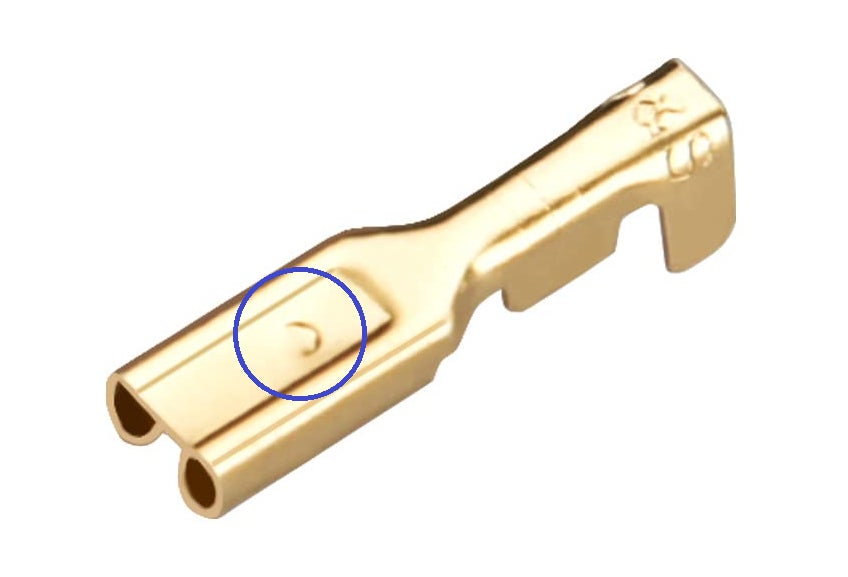 FlashTapにおいて、以下のような小さな凸点がある端子の使用は推奨されません。この種の端子は、FlashTapの2.8L型端子に接続した際に取り外すのが困難であり、無理に取り外そうとすると端子を破損する恐れがあります。