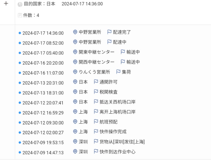7月13日に通関許可が下りましたが、7月17日に商品を受け取ることになり、これは予期せぬ事態でした。運送会社からの説明によりますと、通関許可が下りた時点がちょうど週末に当たり、さらに今週の月曜日が海の日で休業だったため、合計で予定より3日多くかかってしまいました。