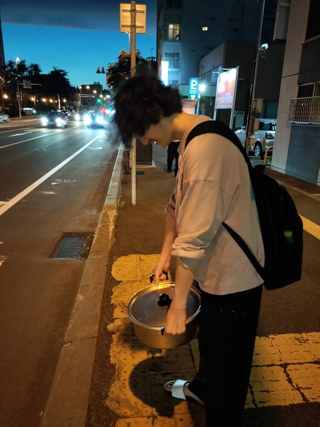 カレーがパンパンの鍋を持ってagoraまで歩く