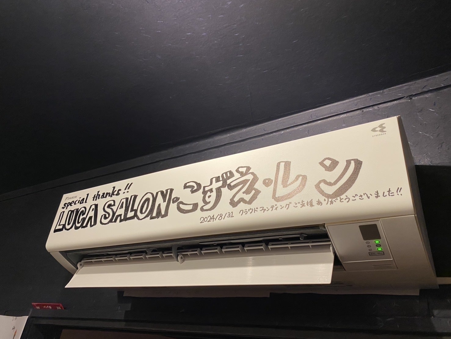 エアコンの表面には、支援者のお名前を記載させていただきました!!ありがとうございました!!!