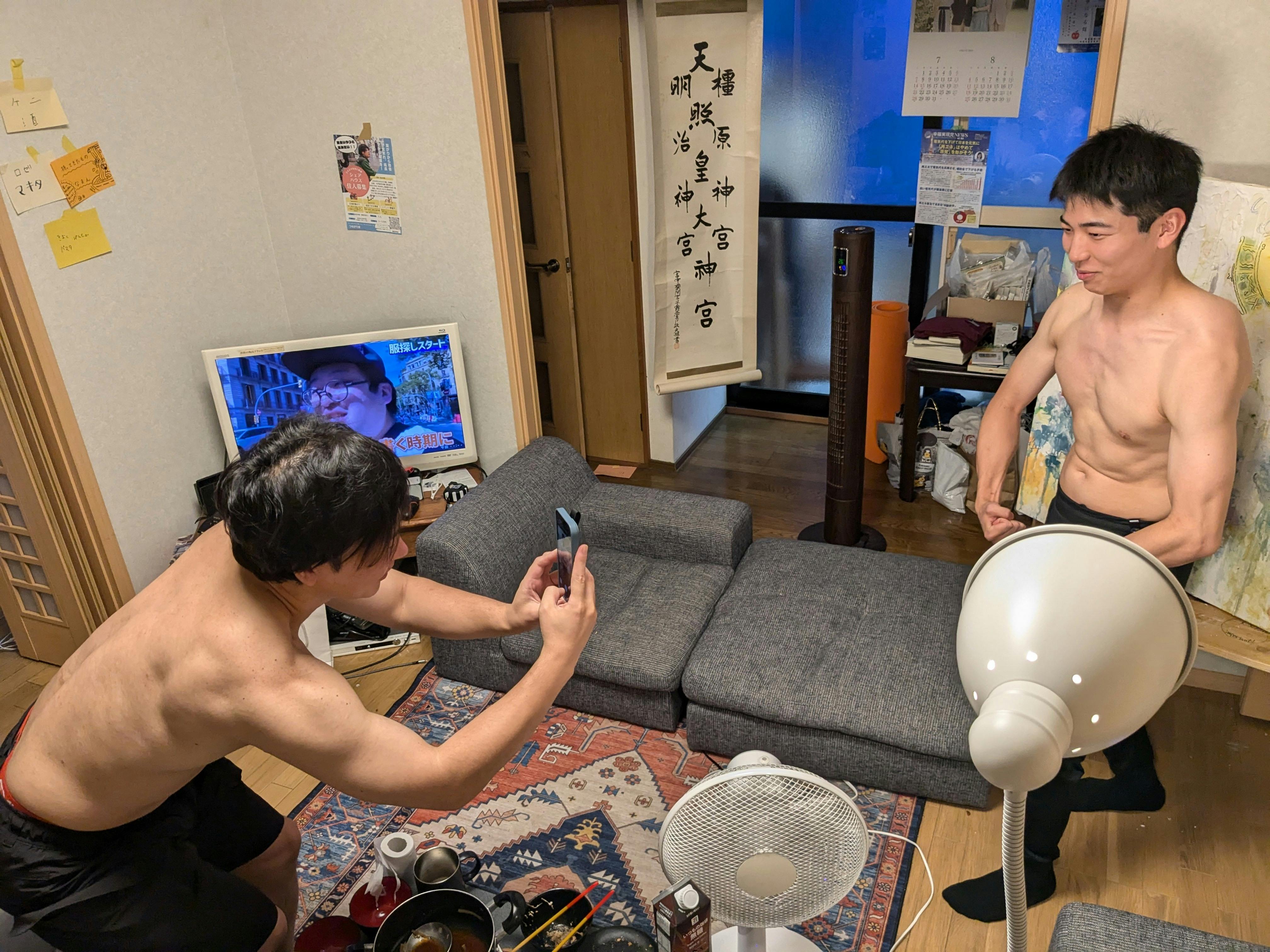 *たんにぃ〜もなぜか熱くなって脱ぎだしました