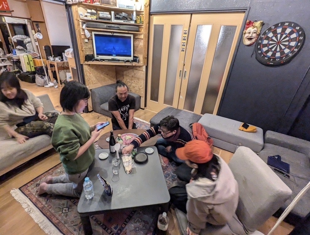 アーバンジャングルお披露目会!どうも、エアコンのリモコンをみんなが無くしすぎて困ってるげんとぉ〜です。一番人気で支援者数も圧倒的に多かったリターン「お披露目会」そのリターンを2024年11月23日に無事開催することができました!祝い樽を用意し、10升の日本酒を入れて始まりました。住民や有志の勇者たちと総出で料理を作り、1Fだけならず2Fも開放しアーバンジャングル中に無数のグループが同時多発するような、まさにジャングルでのパーティーとなりました。世界のマキタさんに遠隔でケーキも頂きました。冷蔵庫が1つ埋まるほどの祝い品も届きました。ありがとうございました!!!お誕生日も祝えるという奇跡もありました!シーシャがついに常設されるシーシャ提供リターンの支援により、シーシャでケムリ漂う部屋もできました。凄まじい人数です。ビフォーアフター動画の上映会6月に物件の正式契約をスタートしてからお披露目会に至るまでに、一体どのような変化を迎えたのか。それをアーバンジャングルのことを全然知らない人にも知ってもらうために、劇的ビフォーアフター動画を住民たちと協力し制作しました。ギリギリ人が溢れかえりました。映像の一部をご紹介!いろんな方々が手伝いに来てくれて、何とかお披露目会に間に合いました!本編はこちらのリンクから見れます。https://drive.google.com/drive/folders/16pLrwy_7ZDE6GywQH3lFtlc4HvgplByF?usp=sharing多くの人が熱狂と酒気に巻き込まれ、お披露目会はいつ終わるのか誰もわからぬまま時計は日付けを超え、知らぬまに1人2人とじわじわ消えていきました。明確に終わり時間を決めず、それぞれが好きな時間に帰り、ある人はSM首輪と出会ってハマってしまったり、ある人は誕生日サプライズを全員巻き込んで仕掛けようとしたり、ある人は代打で参加したので里芋をひたすら剥いてたり、ある人は家の鍵を忘れてまたタクシーで戻ってきたり。数え切れぬドラマを生んだ一夜となりました。当の僕は誰がどこにいるのかわからず、気づいたら全然バイバイできぬまま多くの人が消えていました。まさに密林です。最後にクラウドファンディングに支援して頂いた皆様のおかげで、アーバンジャングルは最高に熱いスタートをきることができました!これからアーバンジャングルはさらなる混沌を目指し「飲食店営業」「農場開設」「第二の小屋の建設」「大人の託児所設置」「ギャラリー展示場」「無料案内所」など実現可能か不可能かよく分からない計画がたくさんあります。今後の内情やイベント情報などは、「アマゾーン住人」に発信しますので、もしよければ以下から入隊&応援してもらえると嬉しいです!https://community.camp-fire.jp/projects/view/807430
