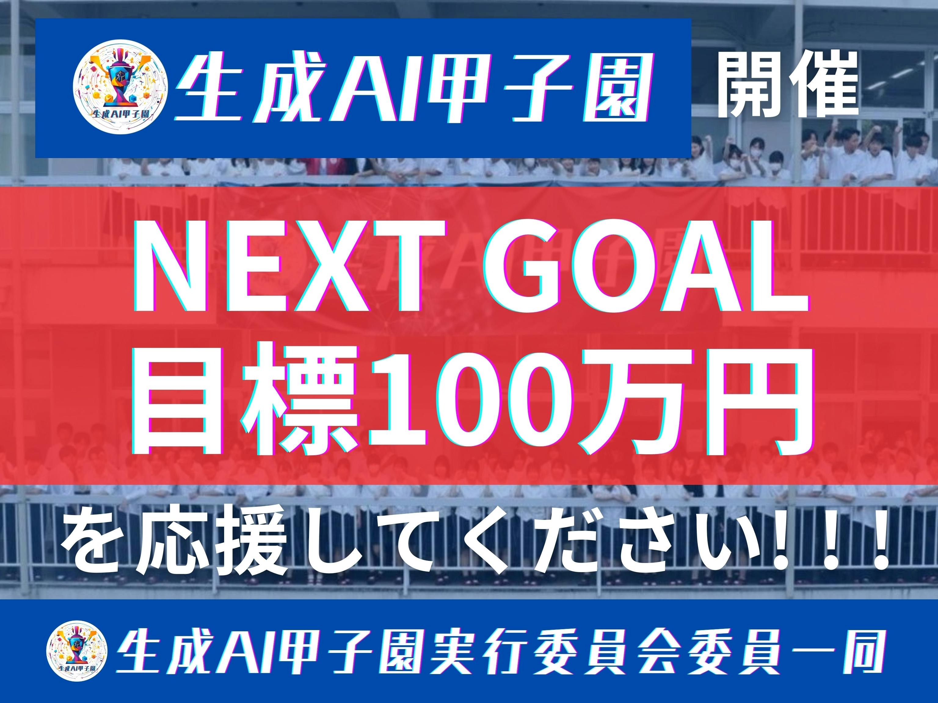 皆様の温かいご支援とご声援のおかげで、生成AI甲子園の第一目標金額50万円を達成することができました。心より御礼申し上げます。この成果に勇気づけられ、私たちはさらなる高みを目指して新たな挑戦を始めることにいたしました。