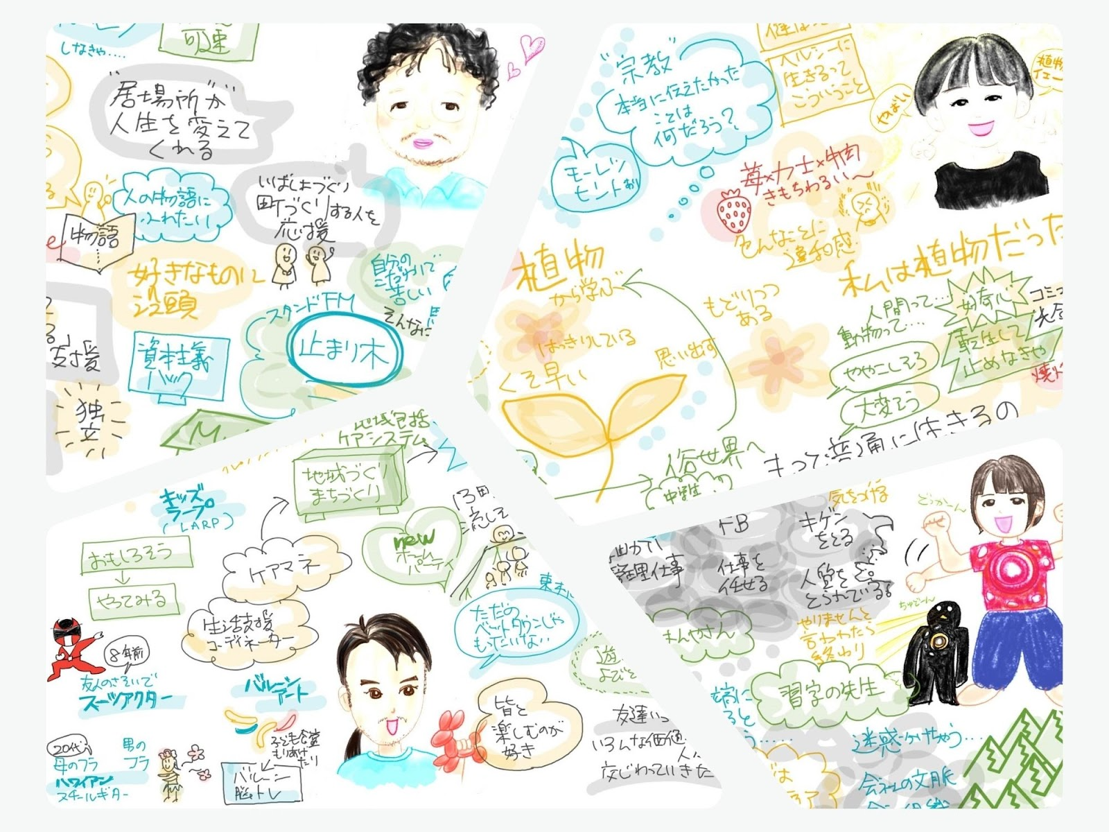 あの頃は、絵を時折見返して「ああ、自分はこう思っているよね」と確かめつつも、整理してもらった気持ちを自らで受け止める余裕がなく、思考がぐるぐると回ったまま新しい仕事に突入していったのだが、今見ると、当時も今も、大事にしたいと思っていることは一緒なのだなあとわかって、自然に顔がニヤッとしてしまった。