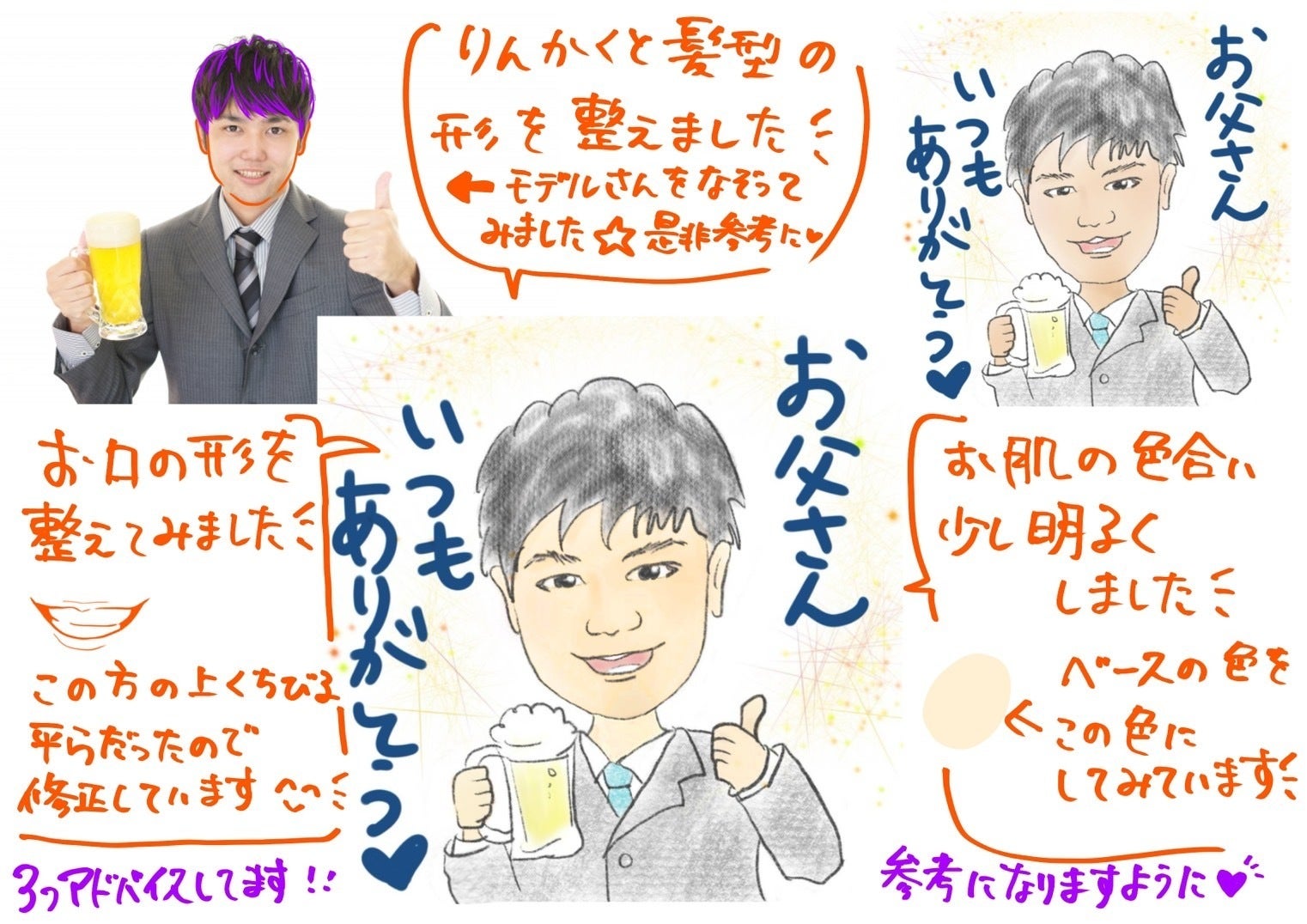 2024/11/07 20:56こんばんは!急に寒くなったからか・・・体調を崩してしまったおりょう(めい)です。皆様いかがおすごしでしょうか?今日は似顔絵のスキルアップに取り組んでいるご報告をしたいと思います。オンラインの講座なのですが、こういった写真をみながら先生の指導をうけつつ自分で書いてみて↓その後添削をしてもらう、というスタイルです。いやー、勉強になります。そして同時に受講されているみなさんは「似顔絵師」さんが多いらしく、プロの方々にまざって緊張しました(・・;)グラキャリの似顔絵がきちんと特徴をとらえて、似ているとよいですよね。まだまだ精進したいと思います。ではまた!がまま東村山 櫻井涼(めい) もっと見る