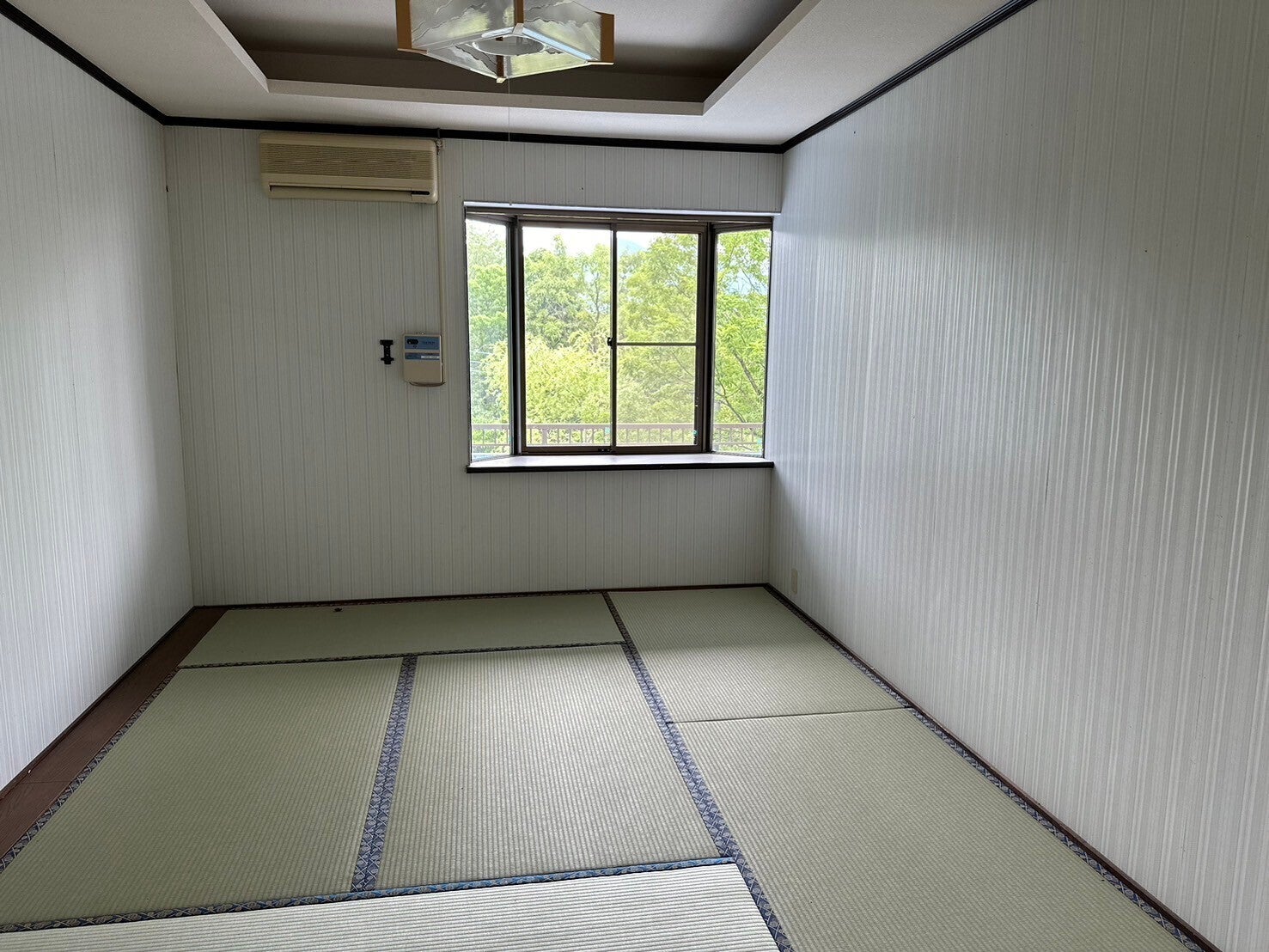 寝室になるであろう和室。コイン式のエアコンなんて昭和にあった気がしますがもちろん交換予定です。