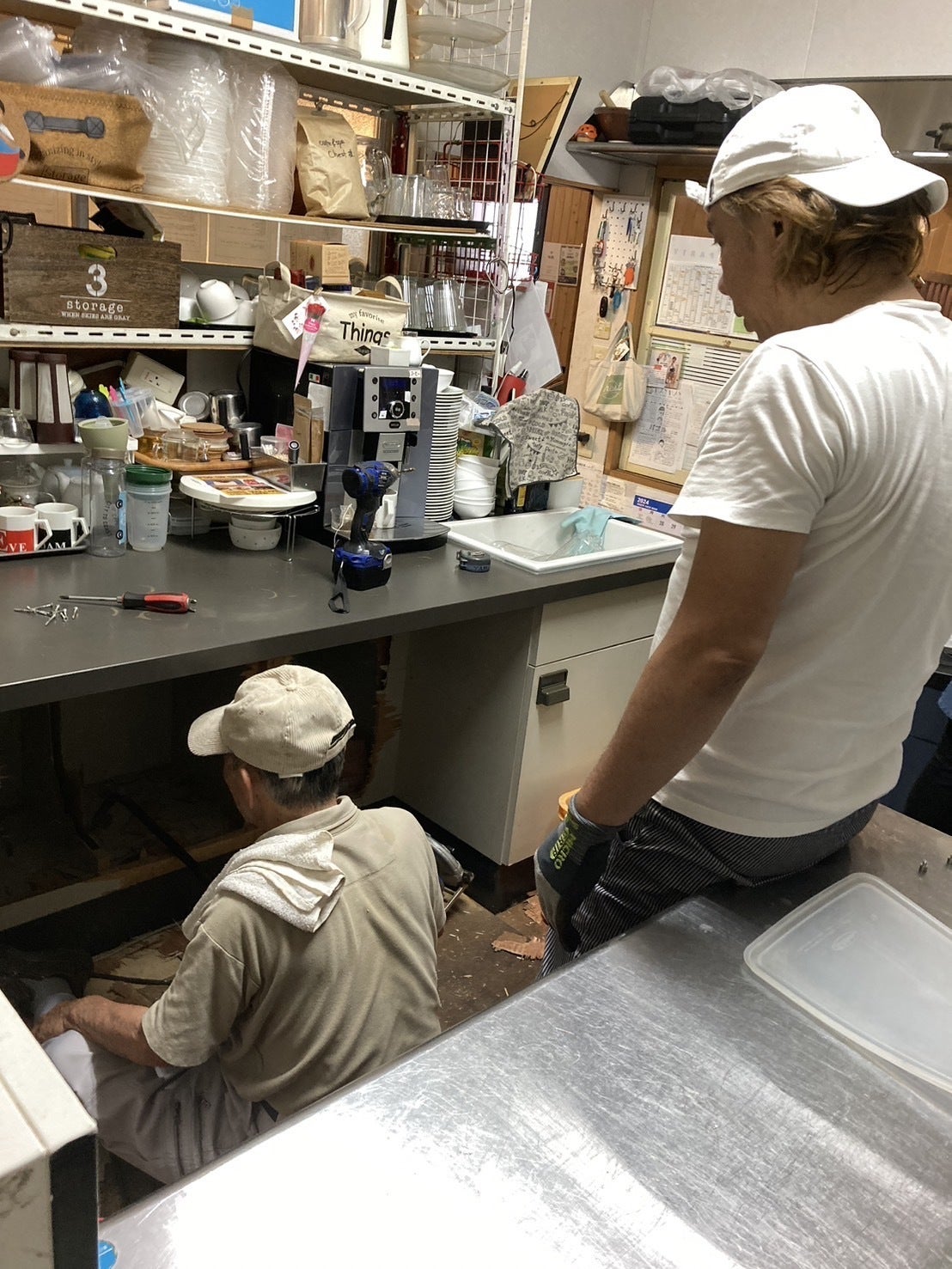 「cafe&spa chest」のプチ改装の一コマ。貫禄の背中を。