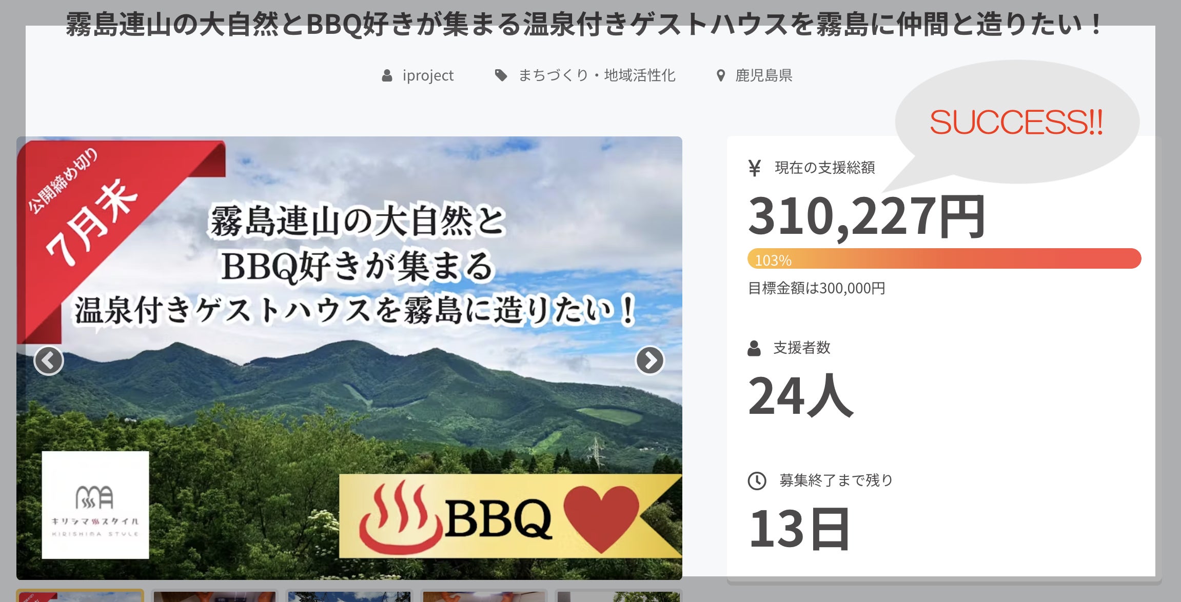 たくさんのご支援、ご協力をいただき、当初の目標はSUCCESSいたしました!