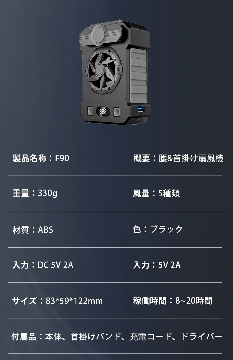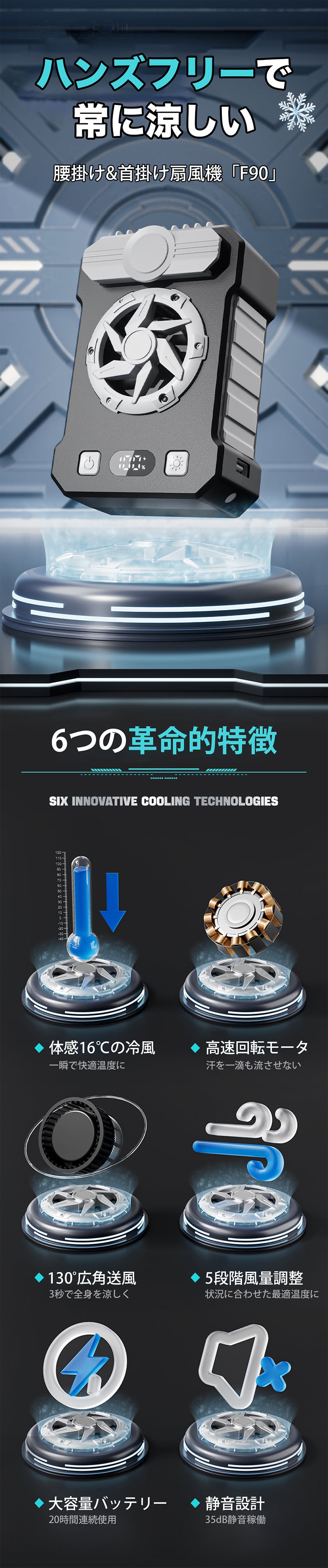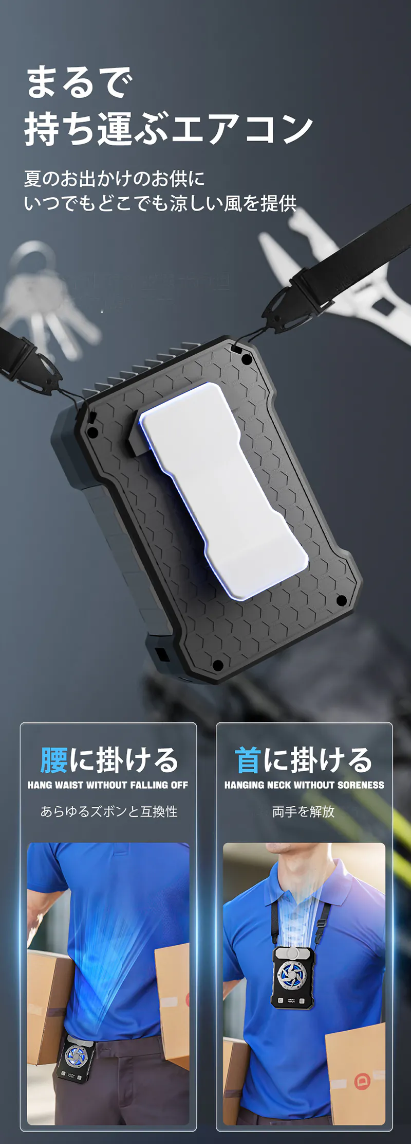 「YF-01」は腰や首に掛けるだけで、常に涼しい風を浴びることがき、暑い夏でも快適に過ごせます。