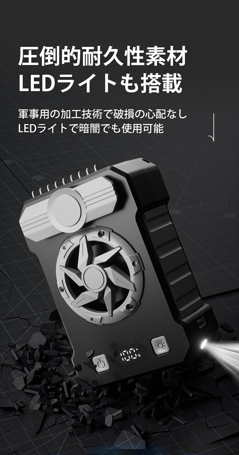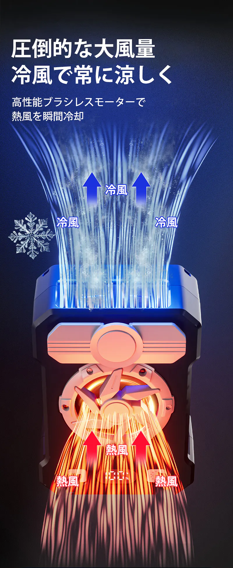 「F90」は6,800回転/分の高性能ブラシレスモーターを搭載しているため、灼熱の屋外でもあなたを一瞬で涼しくする強い風を発します。