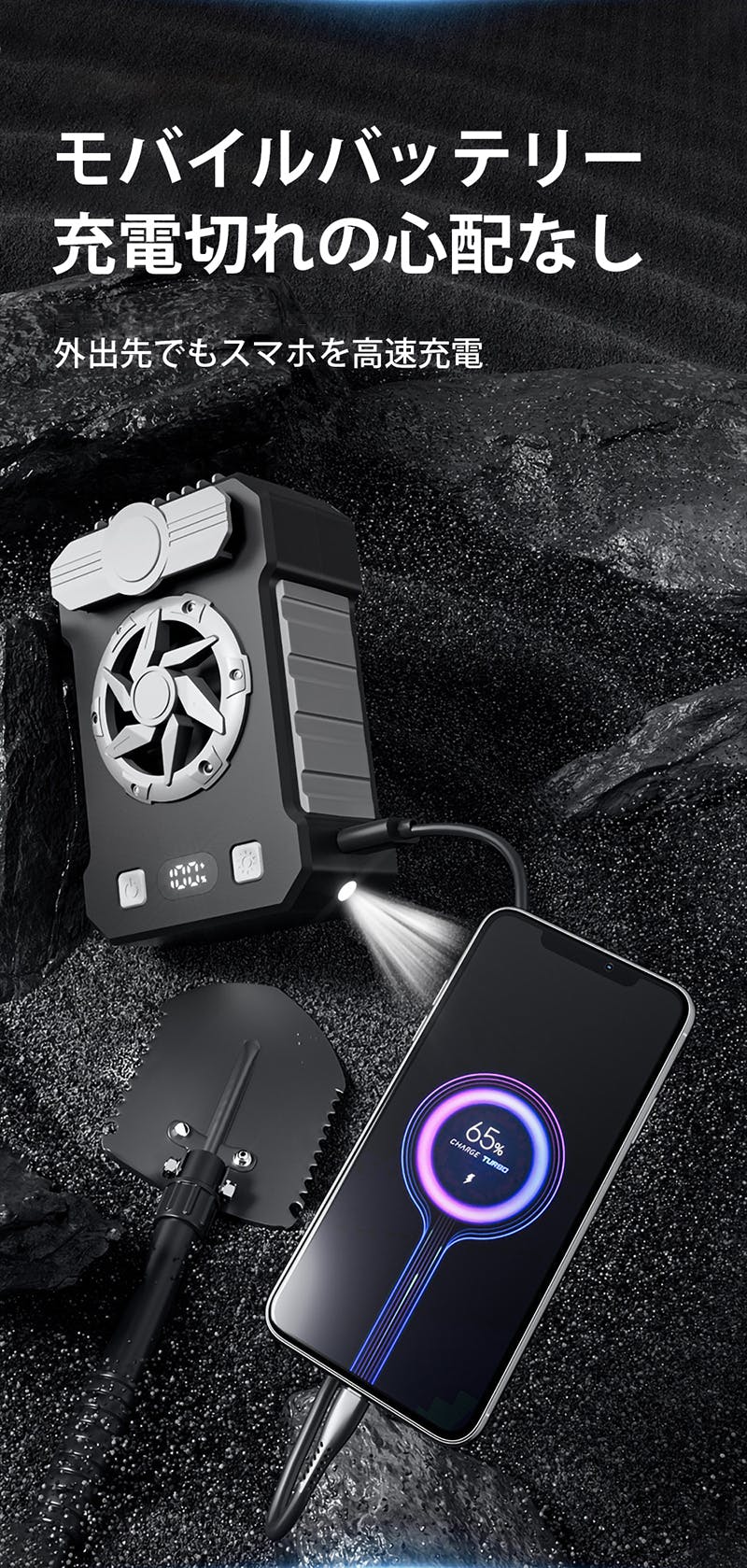 「F90」モバイルバッテリーとしても使用可能です。 もう外出先でスマホの充電切れを心配する必要はありません。