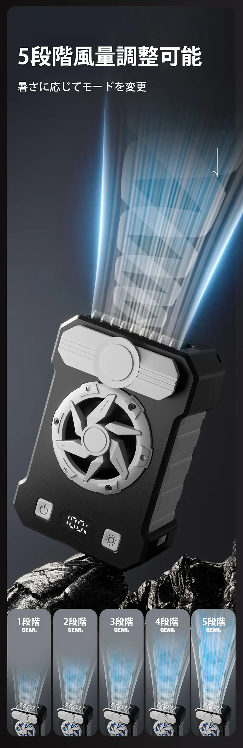 また、風量を5段階に調整でき、暑さに応じて調整できます。