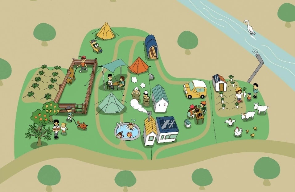 独自のコンセプトは、利用者との協力によって畑を育て、オフグリッドを体験しながらアウトドアを楽しみ、定期的にサバイバルのワークショップを行う。
