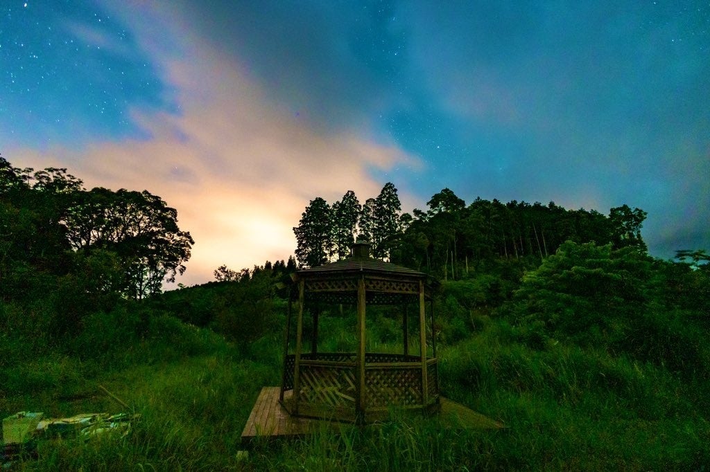 この場所は、天孫降臨の地として知られる高千穂峰を望む、自然豊かな山々に囲まれています。