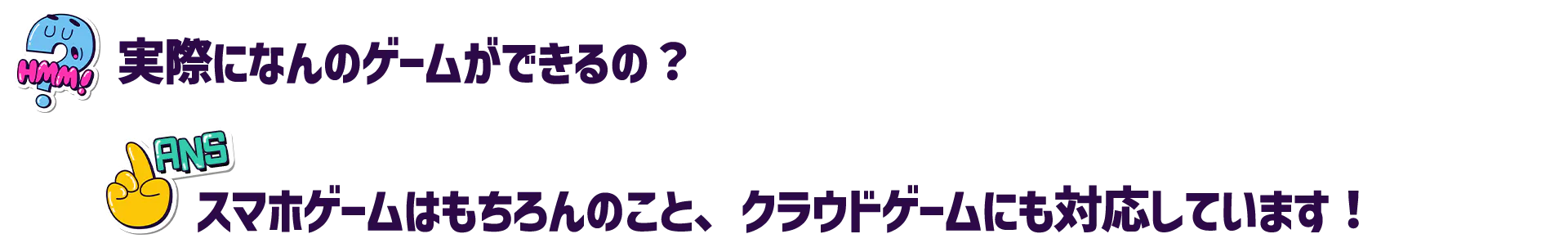 スマホのアプリゲーム(Google Playで配信されているもの)はもちろんのこと、クラウドゲームにも対応しており、Google Play、App Store、Xbox クラウドゲーミング(GamePass)、Steam Link、GeForce NOW等の数千本のクラウドゲームで遊ぶことができます。