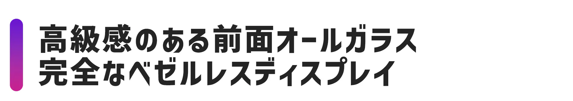 卓越した画面対ボディ比とボーダーレスな体験を実現し、映像への没入感を高めます。フロント部分には、高強度・高精細のガラスカバーを採用し、鏡のようなまばゆい輝きを放ちます。