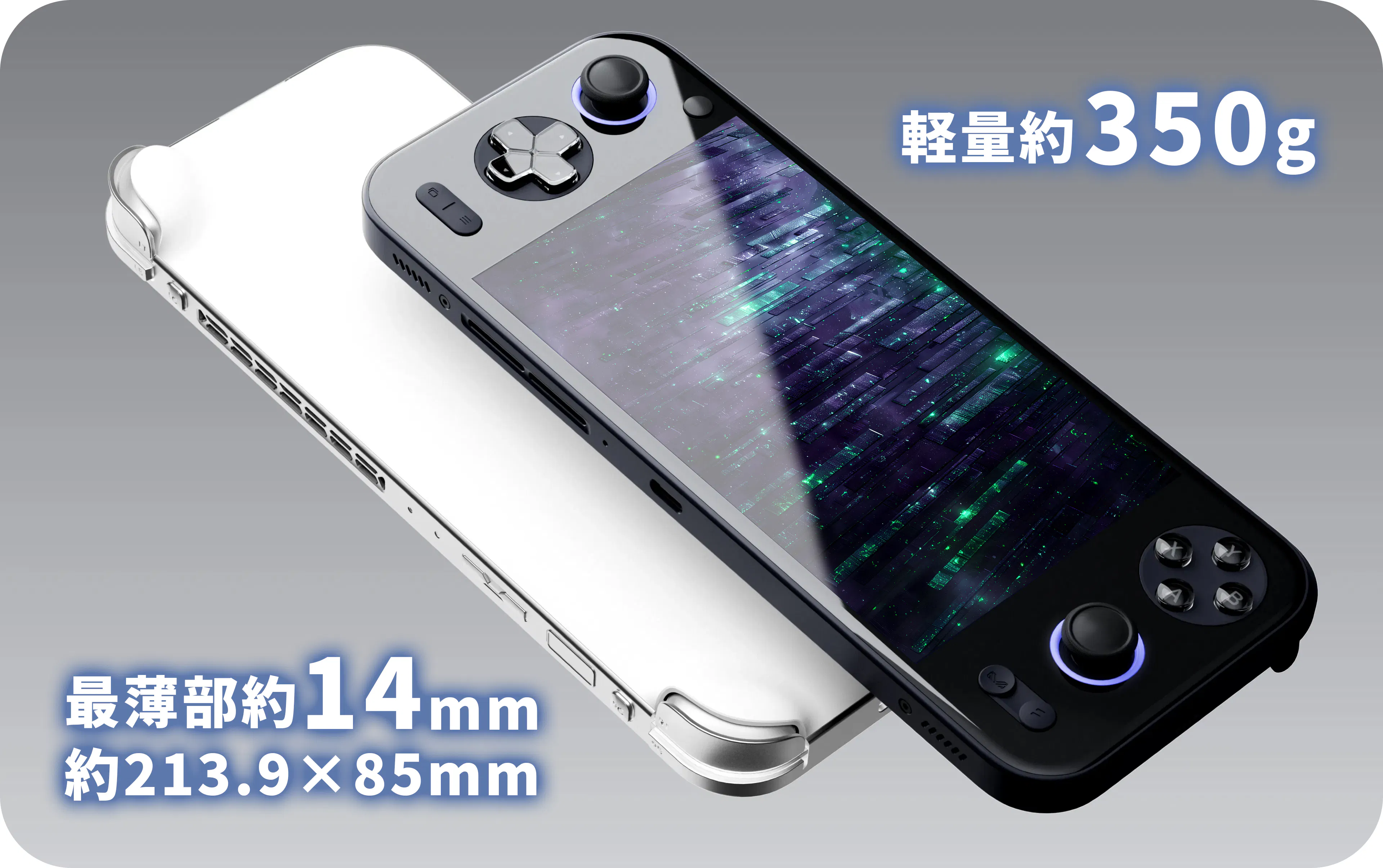 小型で小さい手の女性でも持ちやすく、軽量なデザインを採用。その軽さは、約350gで最薄部は約14mmで、重さを感じることなくゲームプレイが可能です。